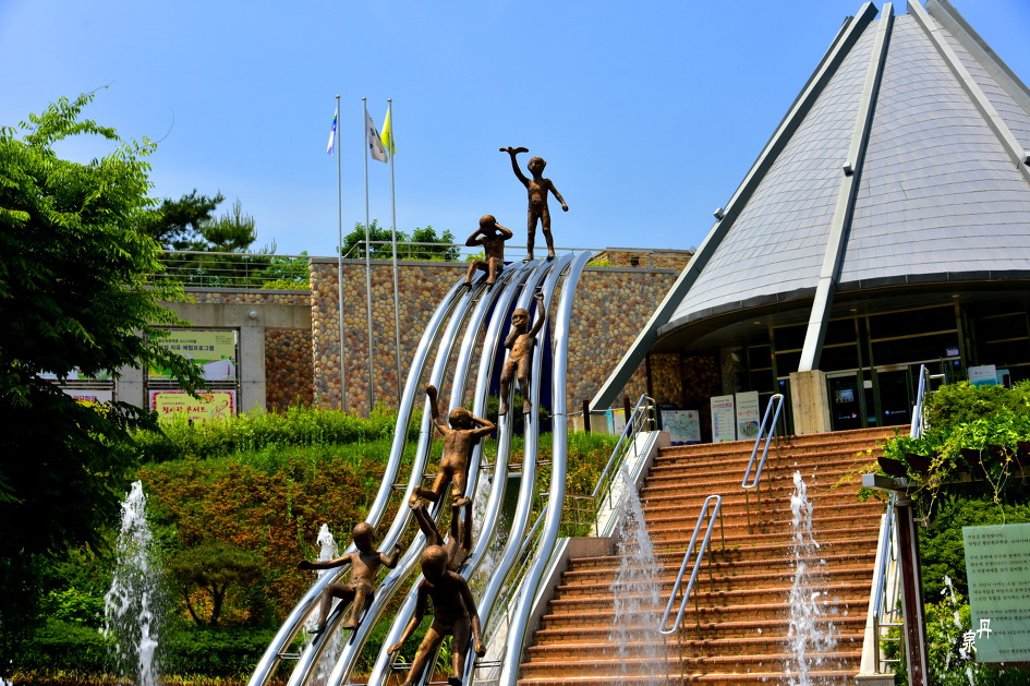 주인공 소년과 소녀의 조각인데 얼굴과 모형이 너무 이국적으로 만들어 있어 조금은 그렇다