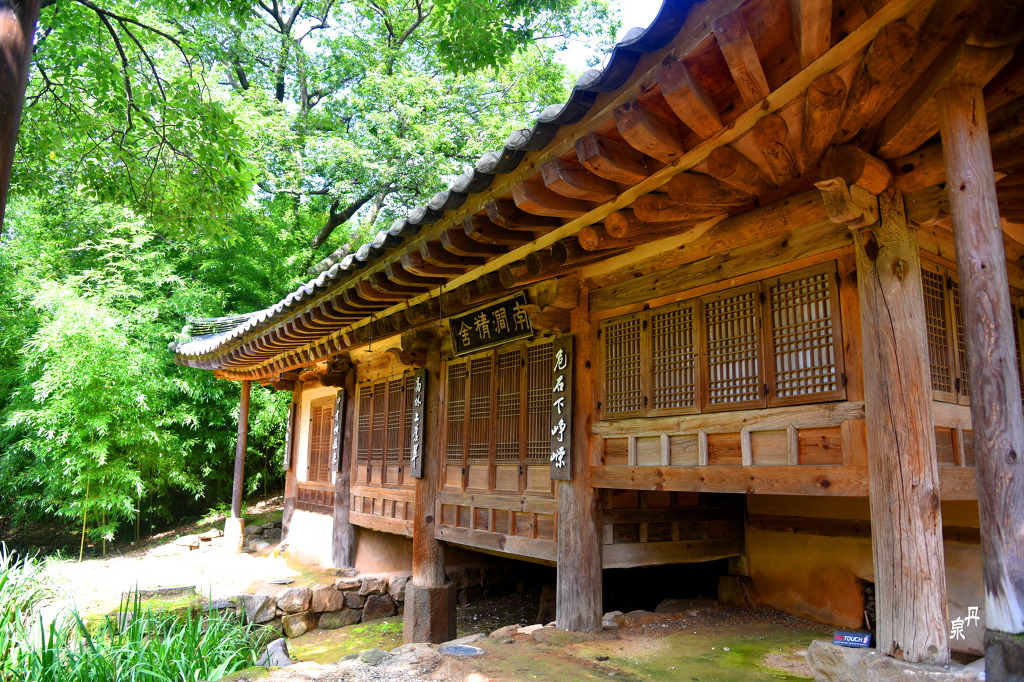 뒤편에서 흐르는 계곡물을 대청 밑으로 흐르게 하여 앞 연못에 모이게 하여 운치를 더하게 하는