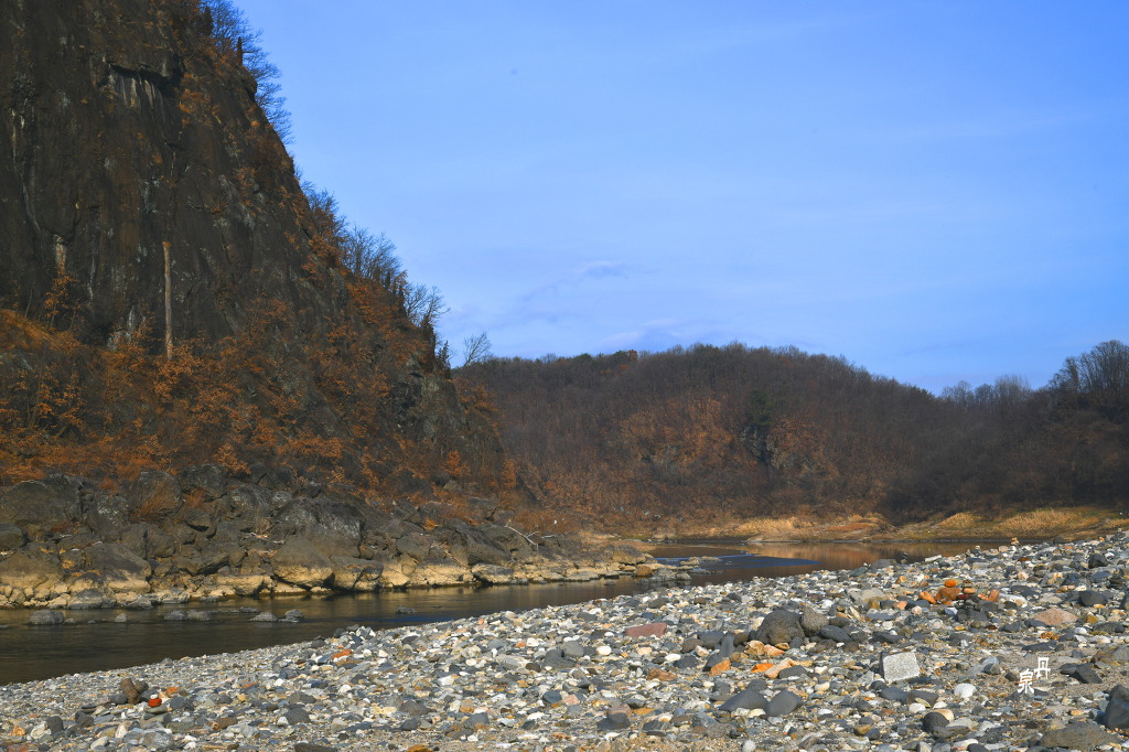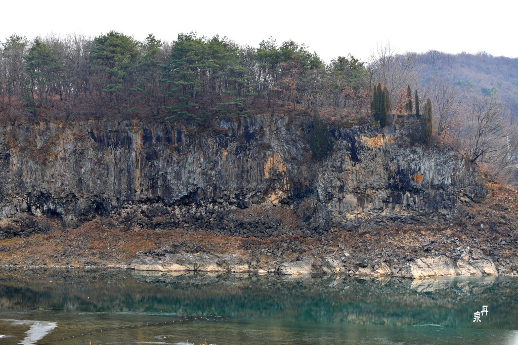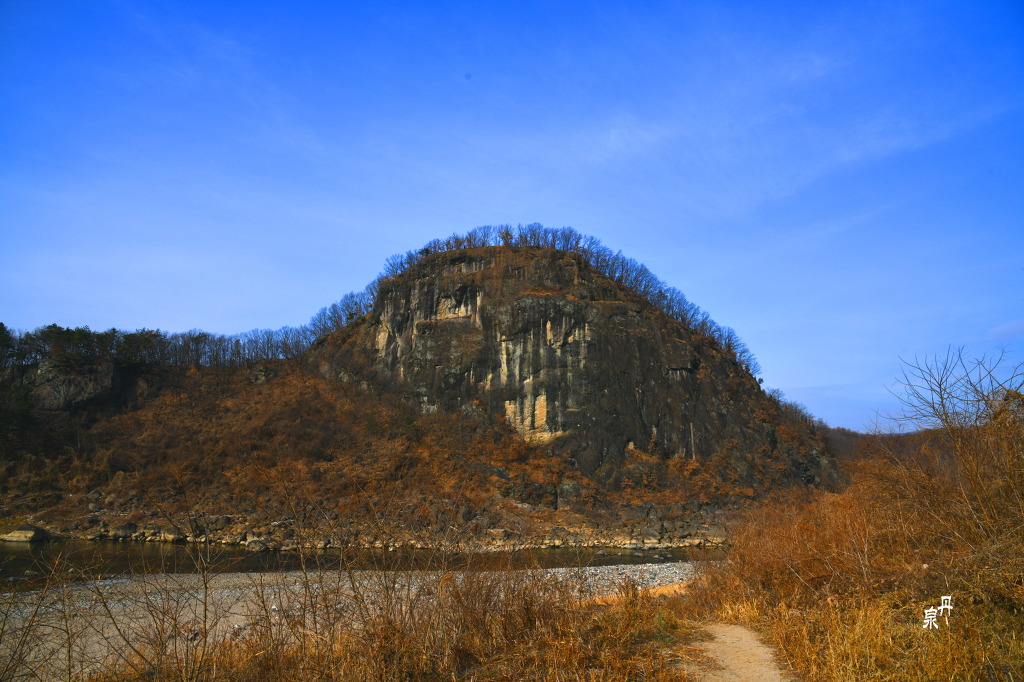 한탄강에 높이 60m로 우뚝 솟아있는 좌상 바위