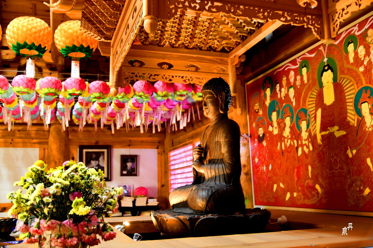 그 은혜에 보답하 듯 불상 옆에 두 사람의 사진이 나란히 걸려 있다