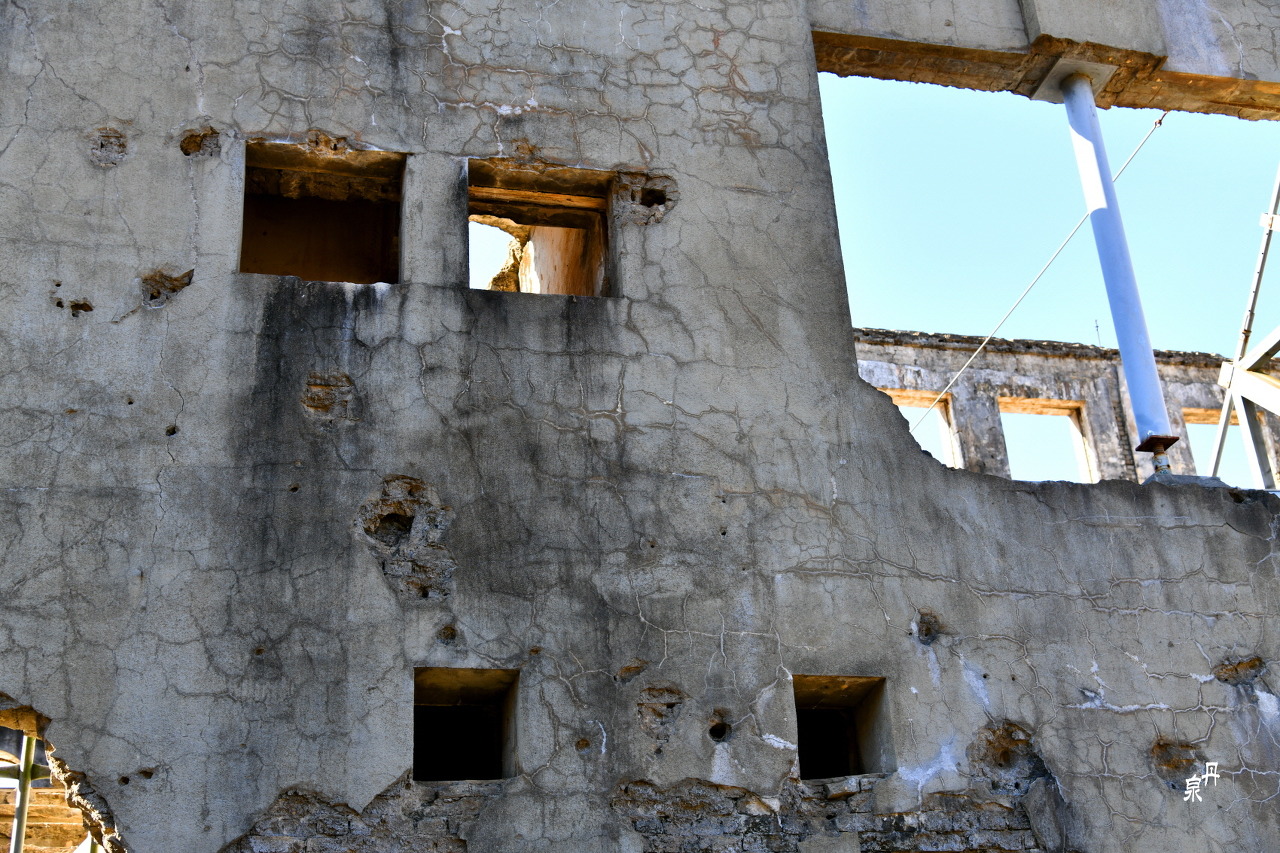 아래의 조그만 창문은 감방으로 보이며 수많은 포탄 자국이 치열했던 그날을 말해 주고 있다