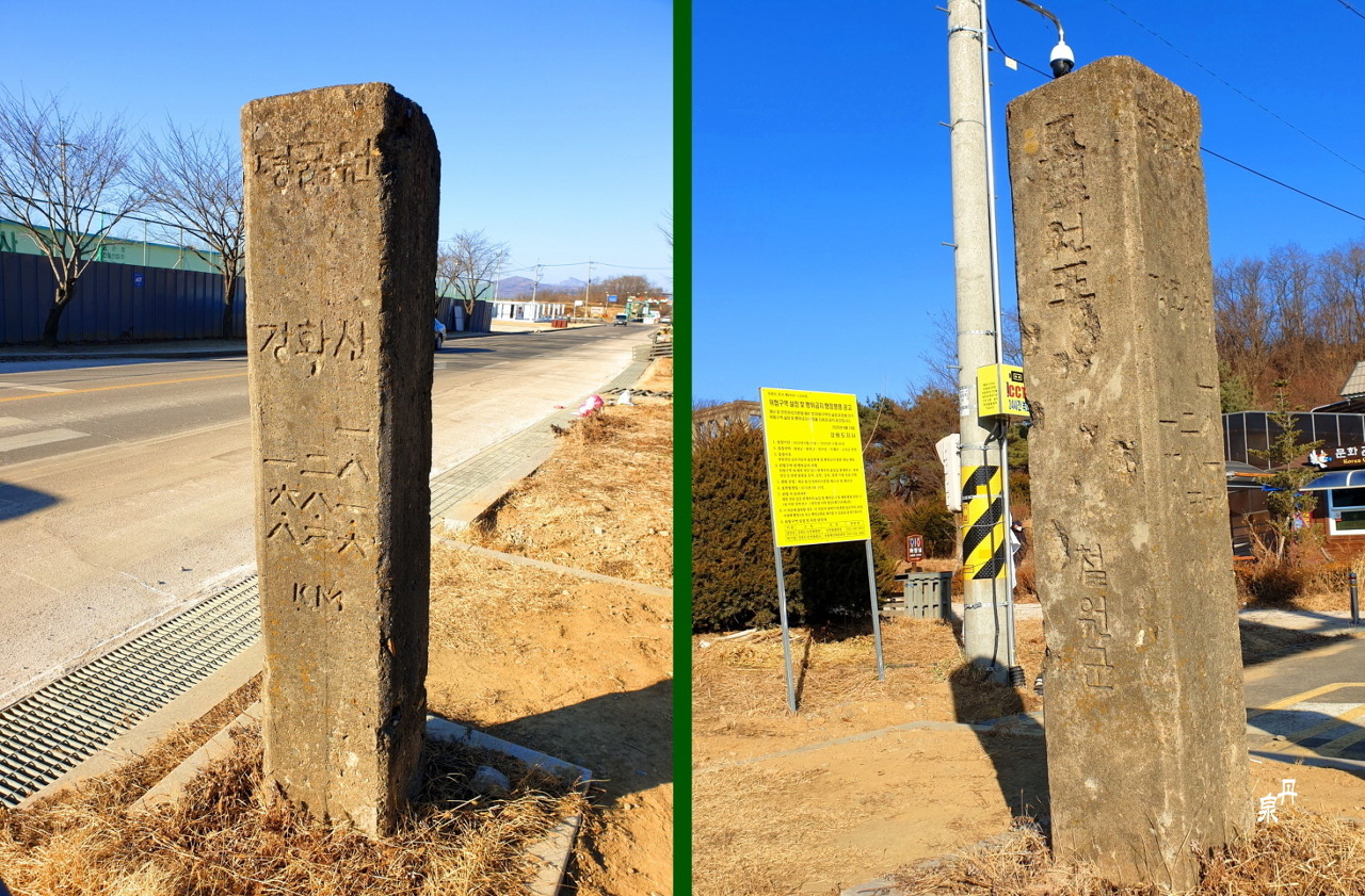 일제가 세운 철원군 도로원표가 당사 앞에 있다