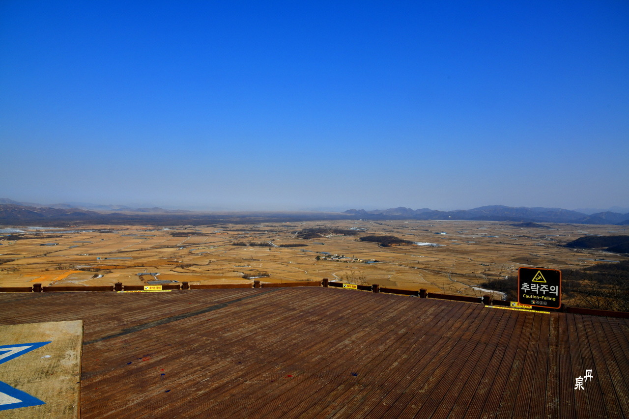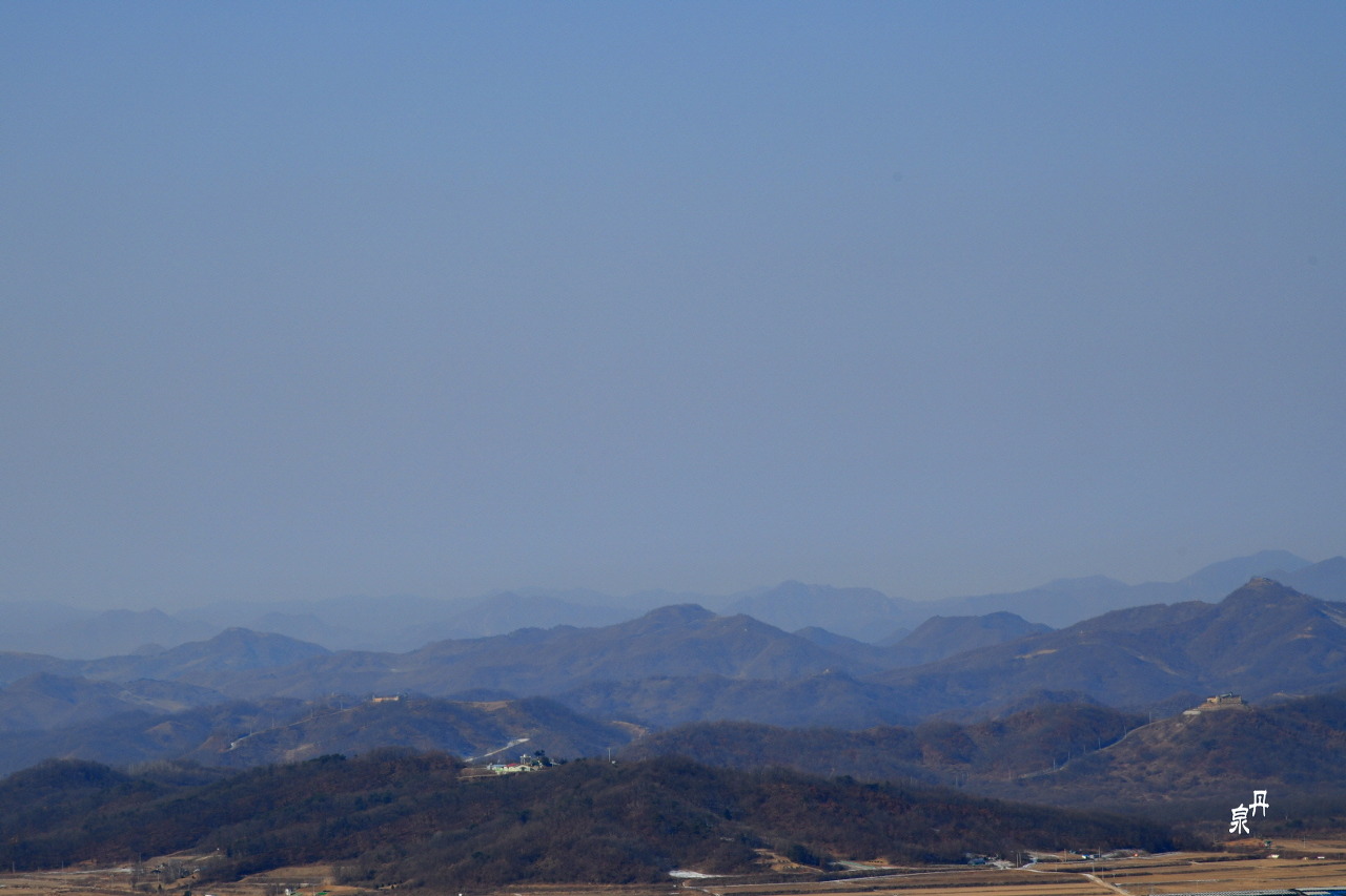 곡창지대 철원 평야가 발아래 펼쳐지고 건너편에는 북한 평강고원이 보인다