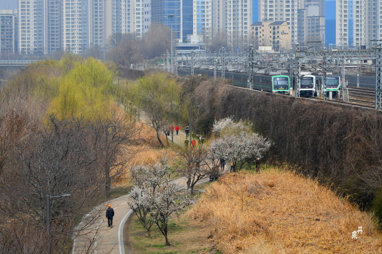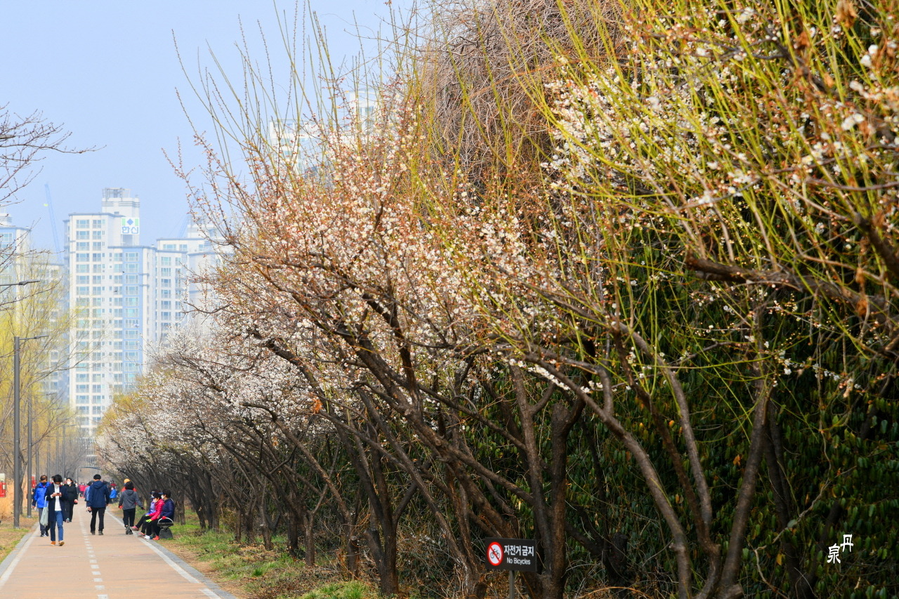 용답역에서 신답역 600m에 매실나무 350 그루를 심었다