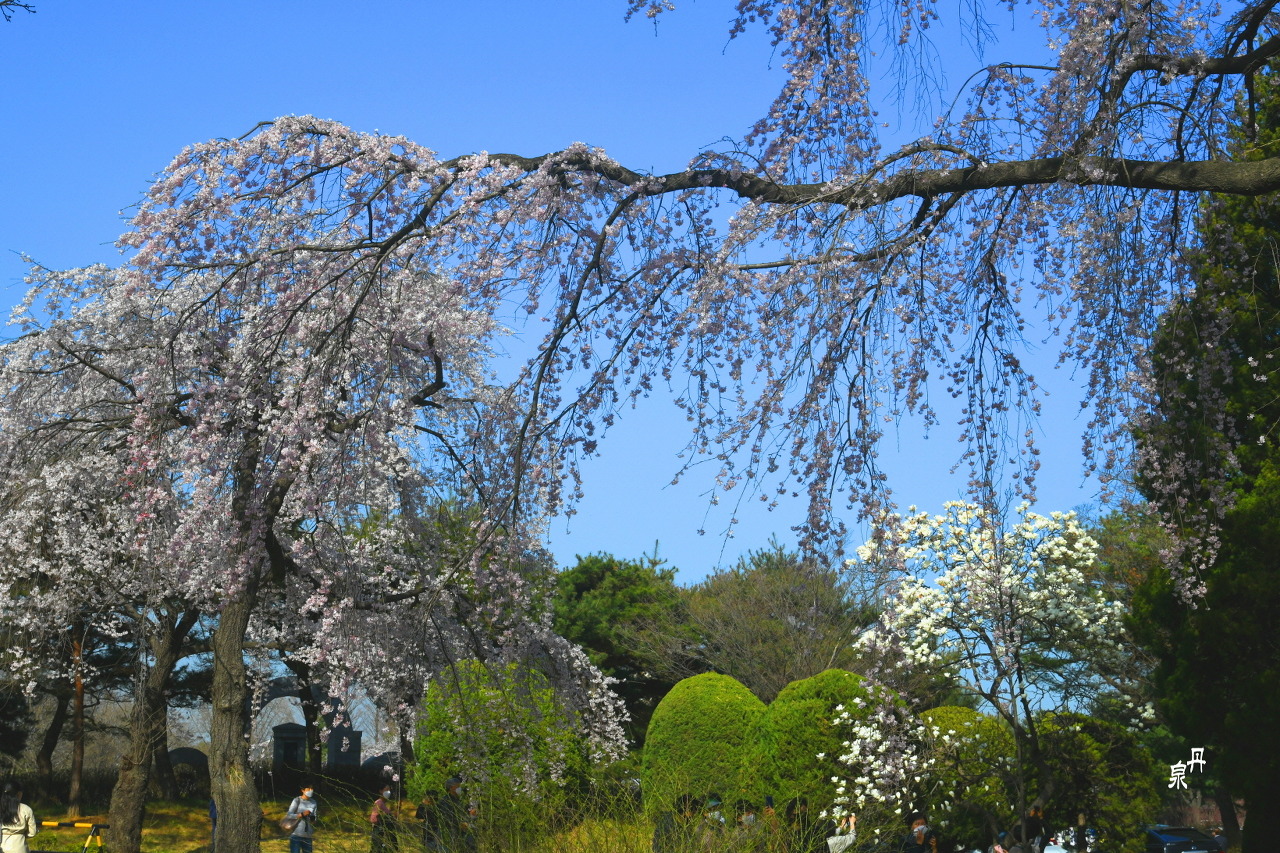 분홍 수양벚꽃과 하얀 왕벚꽃 그리고 하얀목련