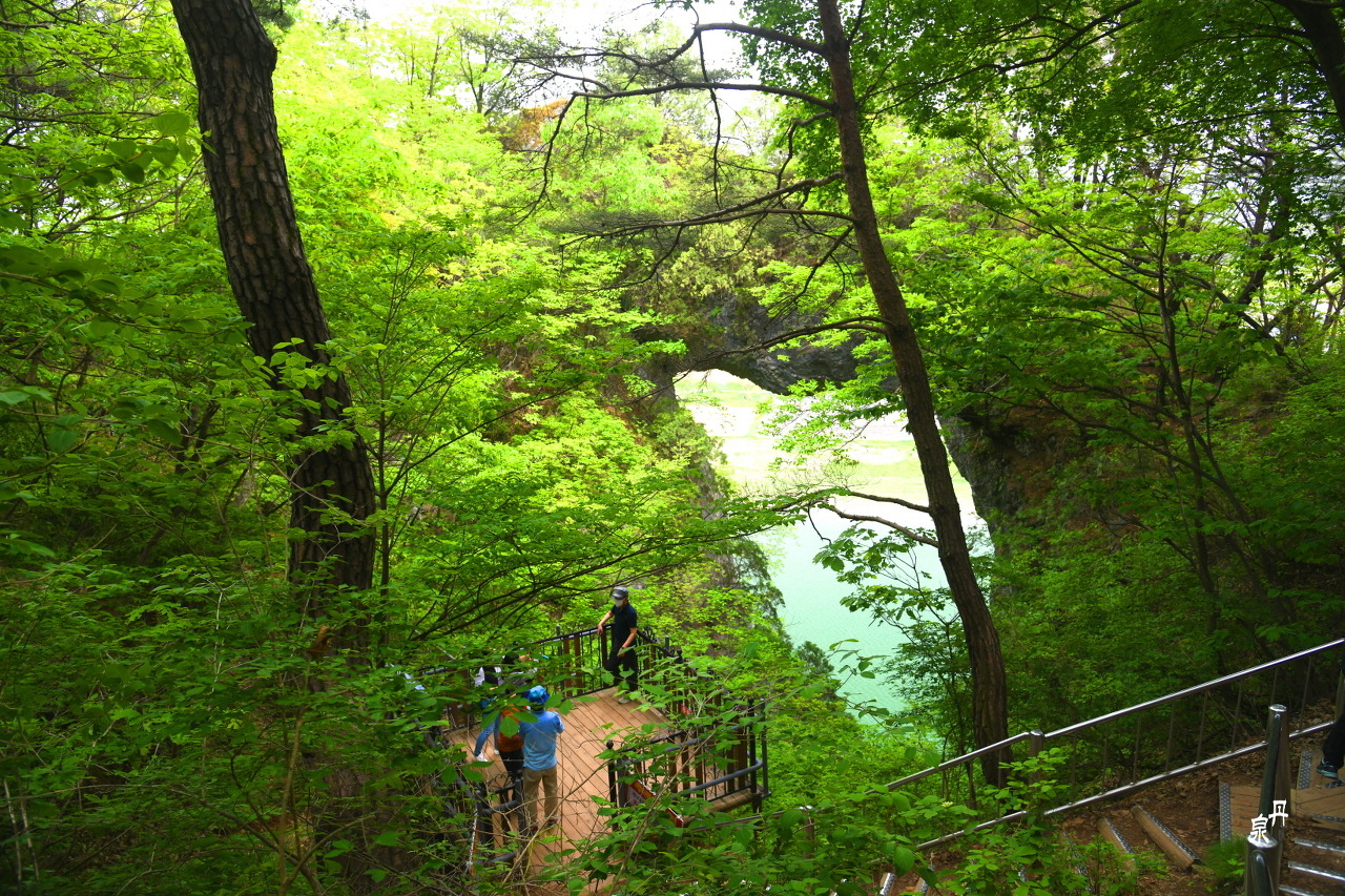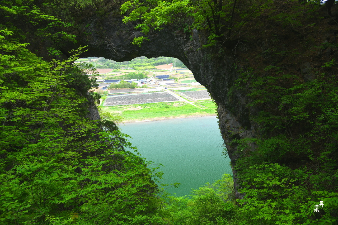 옛날 석회동굴이 무너지고 천장의 일부가 남아 구름다리 모양이 되었다는 석문은