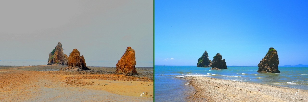 그래서 제부도의 사진을 보면 대부분 썰물 때 보이는 사진이 대부분이다