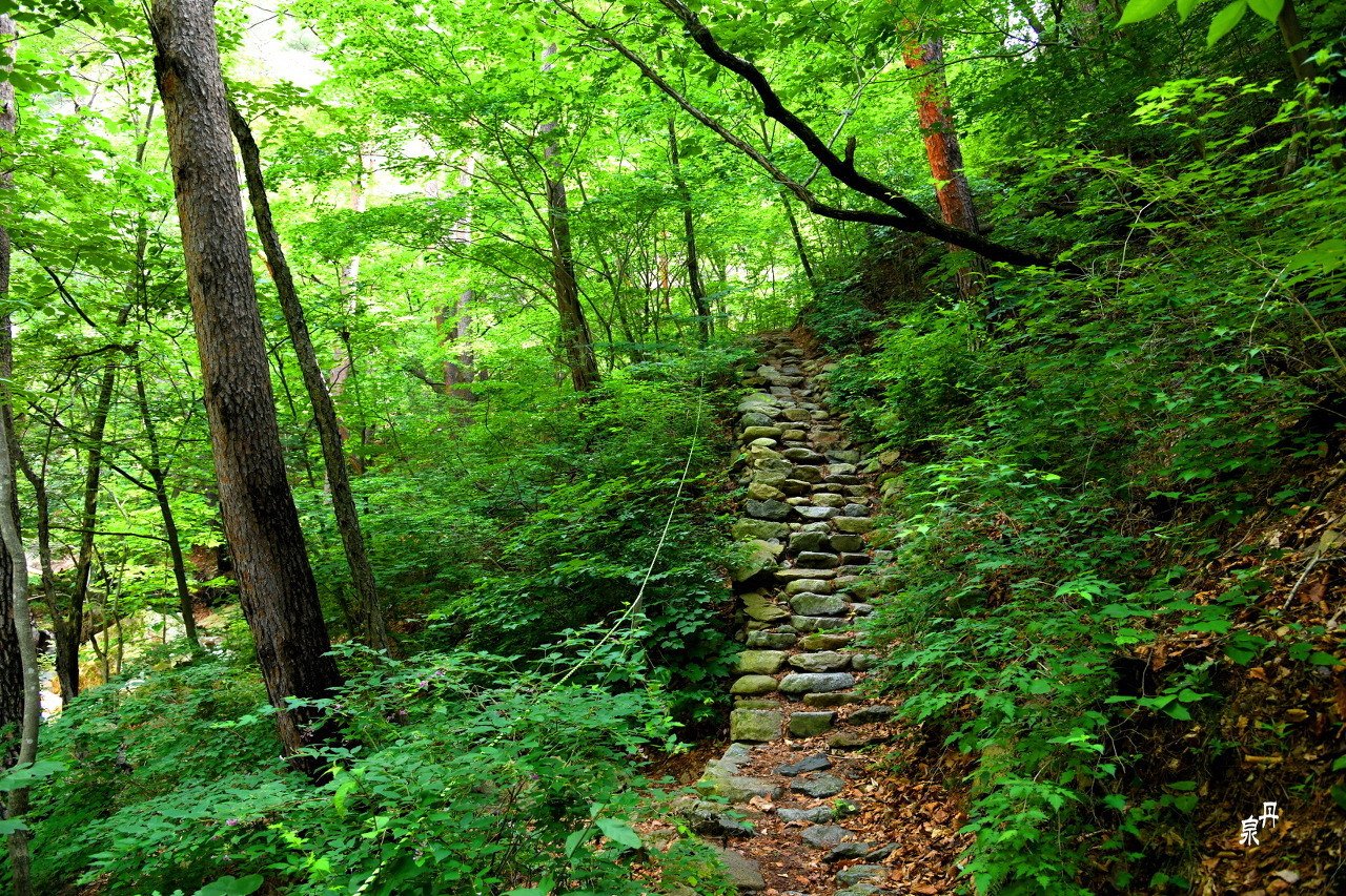 대승폭포는 장수대에서 0.9 Km의 짧은 거리지만 끝까지 계단으로 이어진 깔딱 고개의 연속이다