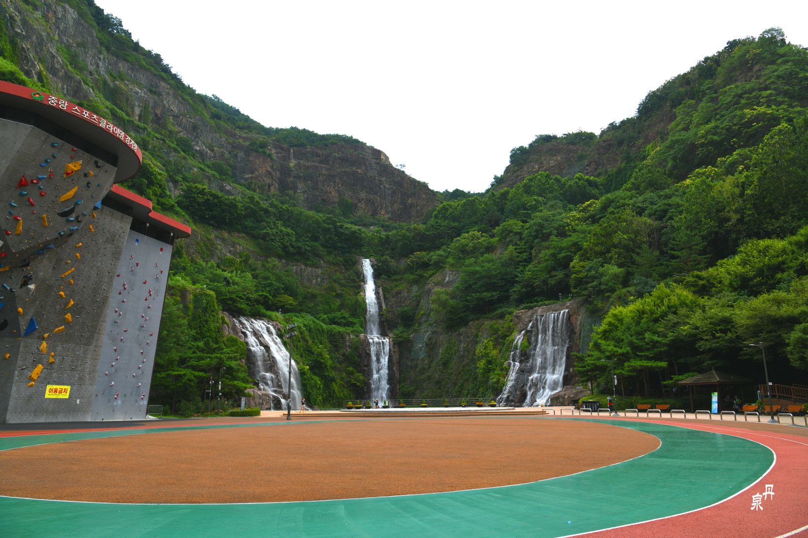 서울 면목동 용마산내 용마공원의 용마폭포는 인공폭포지만