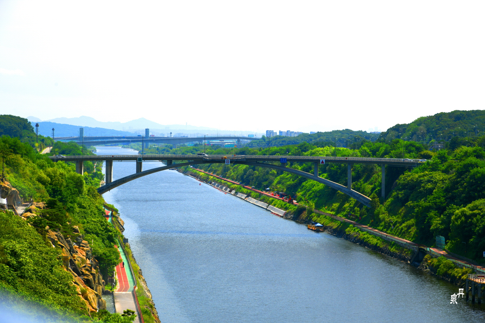 경인운하는 2012년 인천 앞바다와 김포 한강을 잇는 길이 18.7Km 폭 100m로 개통된 뱃길이나