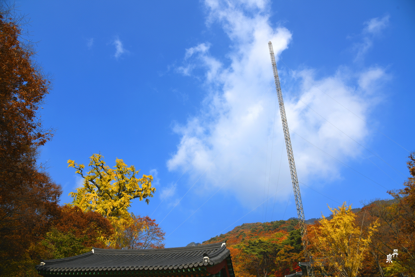 43m 은행나무를 낙뢰로부터 보호하기 위하여 세운 피뢰 철탑 86m