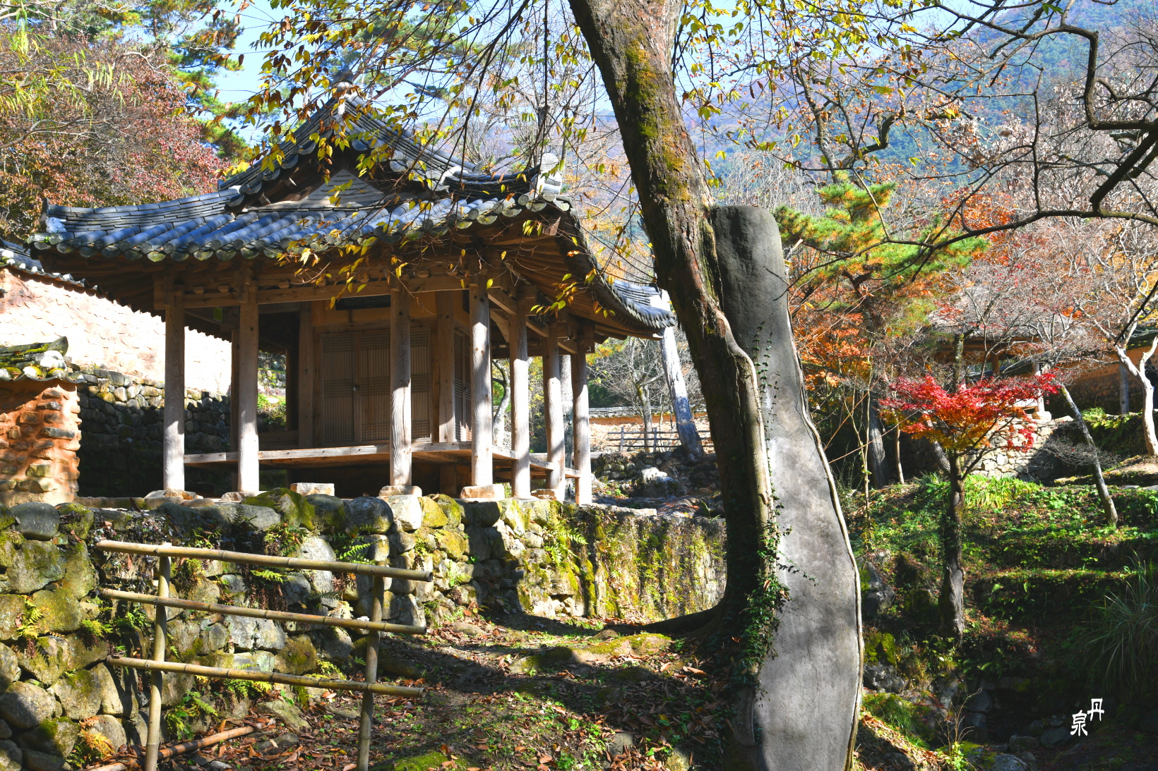 대봉대(待鳳臺). 손님을 처음 맞이 하는 초가 정자이다