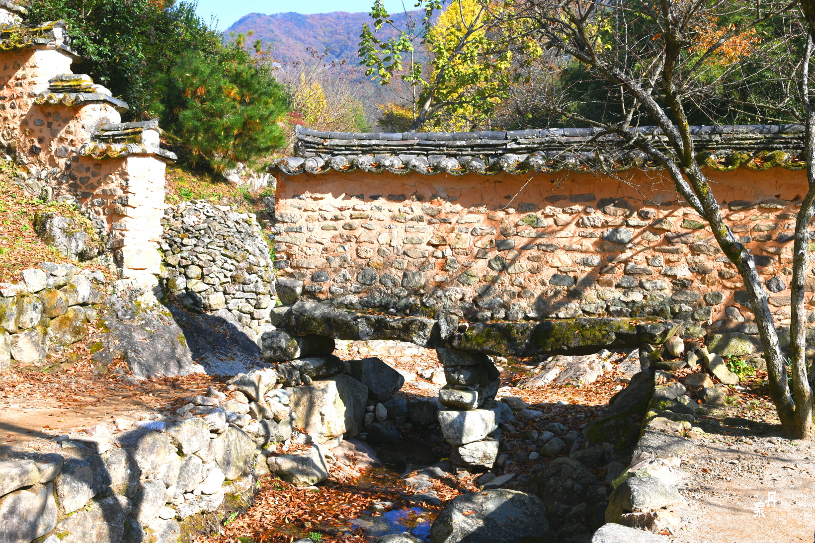 오곡문 바깥쪽, 담장 아래로 물이 흐르고 있었다면 얼마나 보기 좋았을까