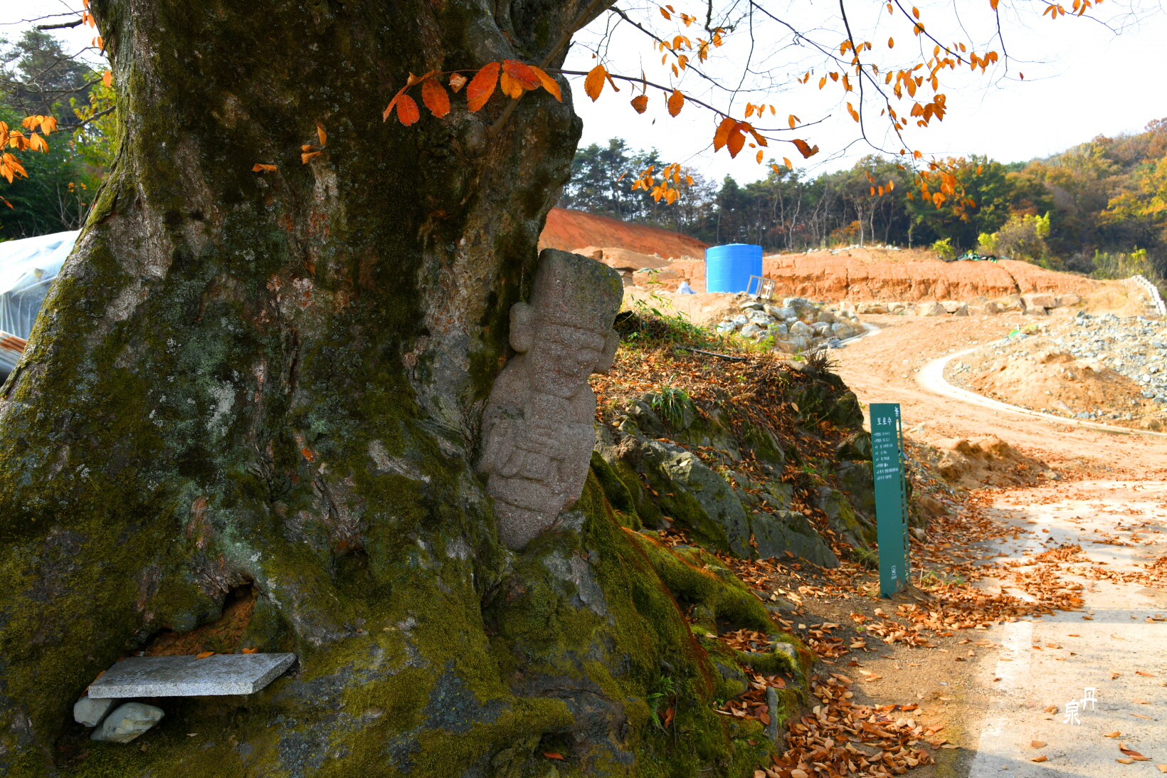 어떤 사유에서인지 멀리 떨어지게 되었고 하나는 느티나무 품에 안겨 깨끗한 상태로 유지되어 있으나