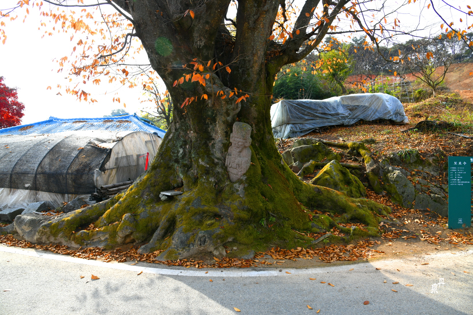 나무가 안고 비바람을 막고 보호하여 비교적 원형 그대로 잘 보존되어있다