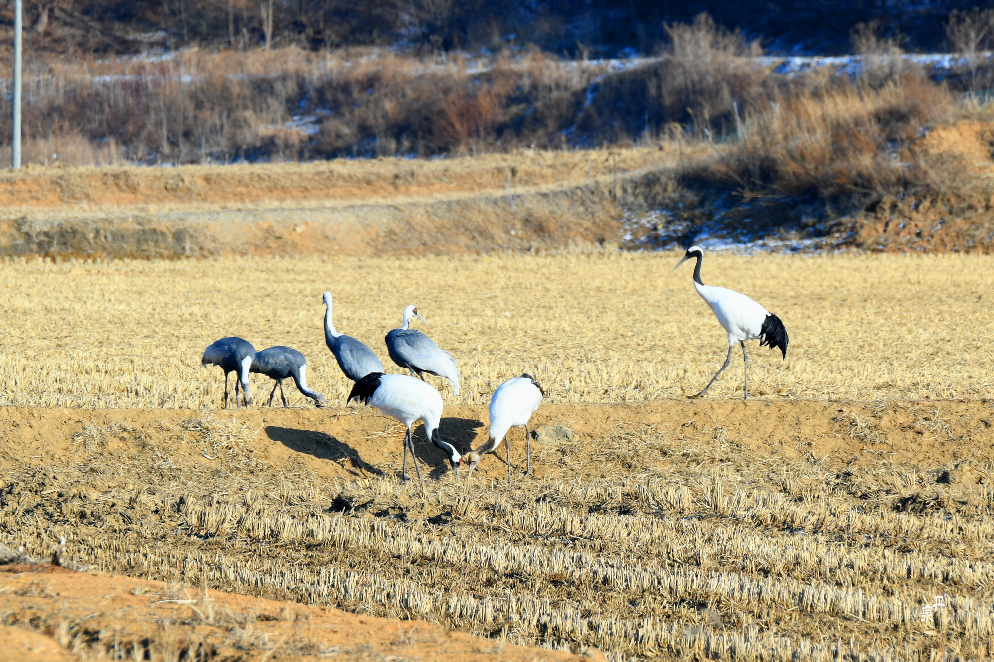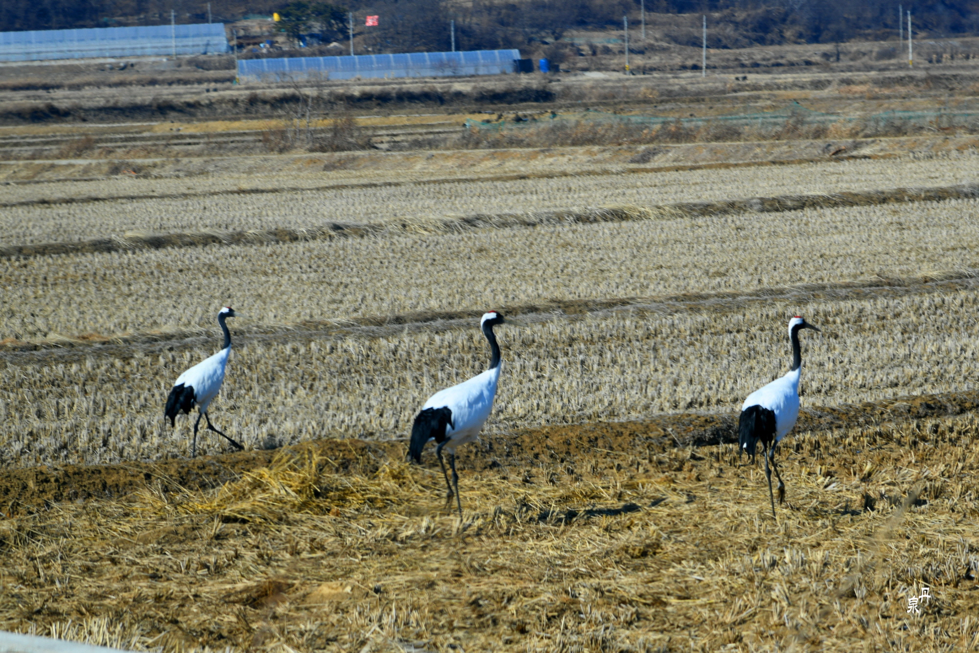 논 밭에서 먹이 활동하는 두루미들도 차만 세우면 돌아서 쉽지 않았습니다