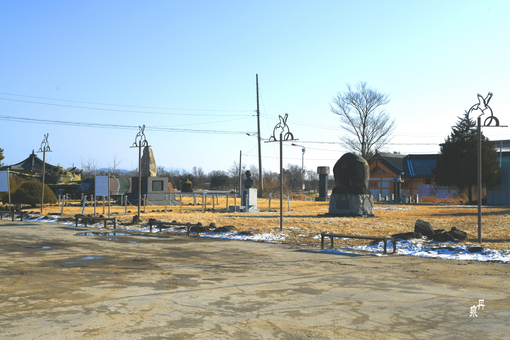최전방 역 광장에는 각종 조형물들이 있다