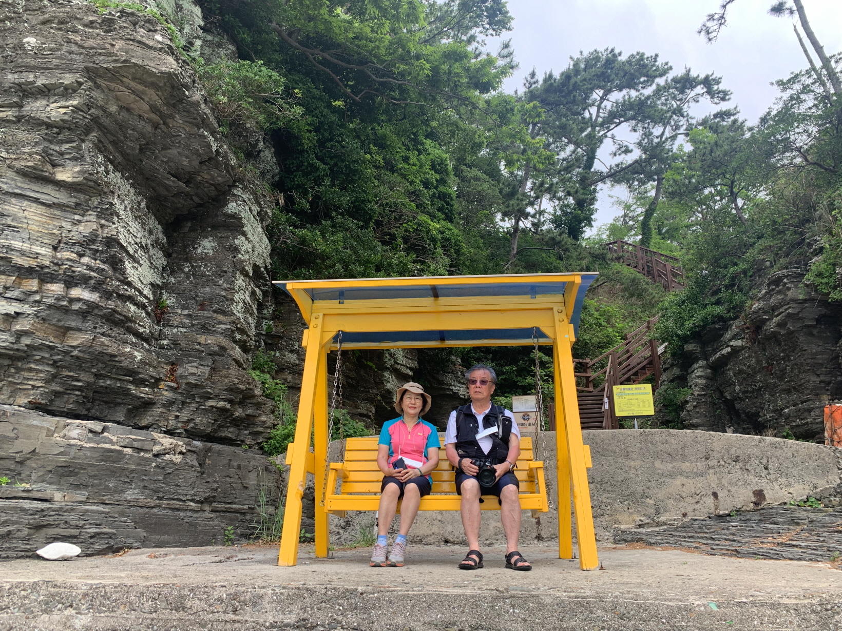 돌덩어리 바닷가에 예쁜 노란 흔들의자가 보이면 다 온 것이다