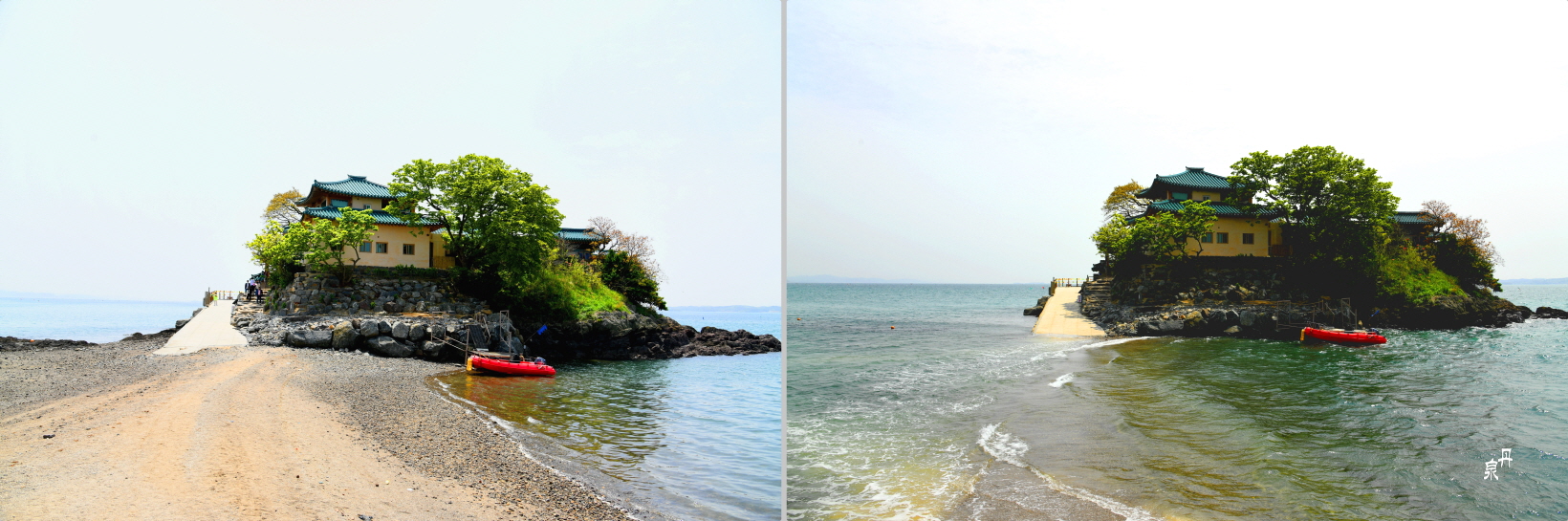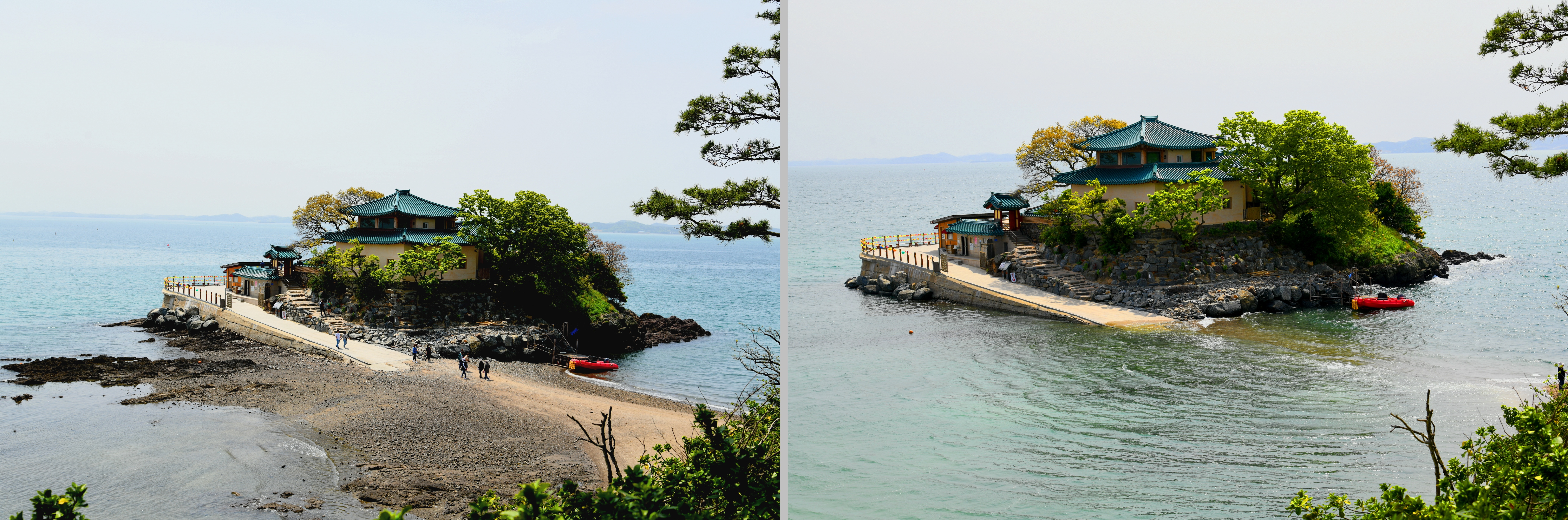 낮시간 때 두 모습을 한 번에 촬영하려고 몇 달 물때 시간을 연구하고 날짜를 택일하여