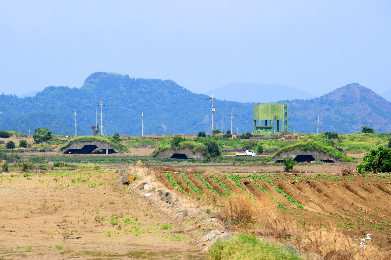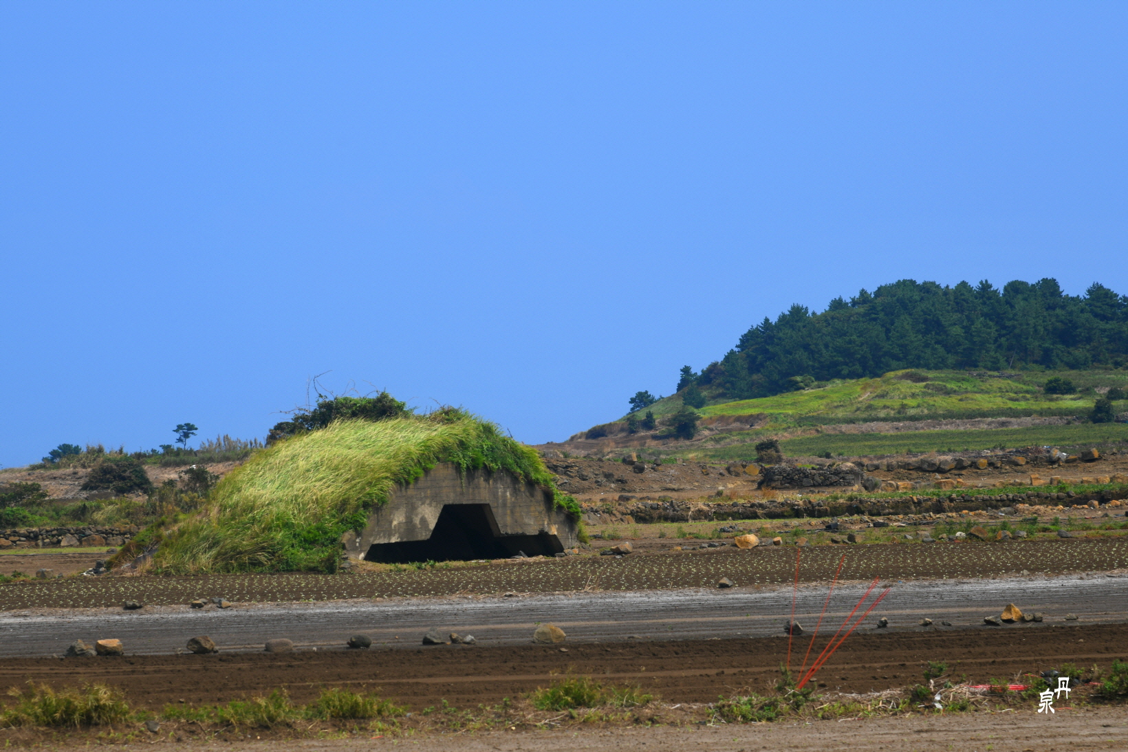 산방산이 보이는 아름다운 평야에 만든 비행장은 벌판으로 남아있고 격납고는 원형 그대로 남아있어