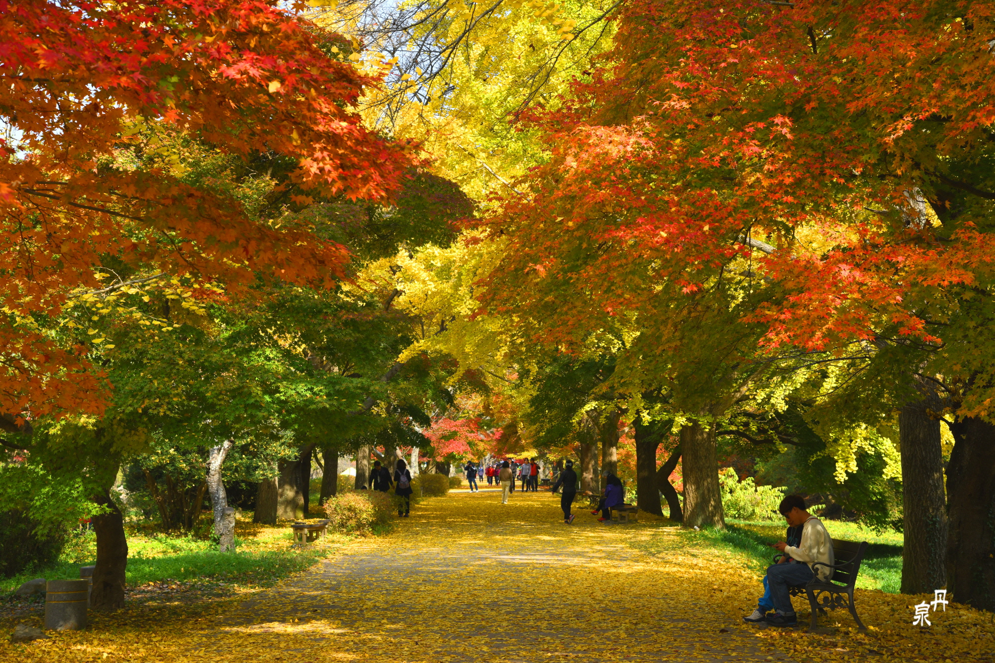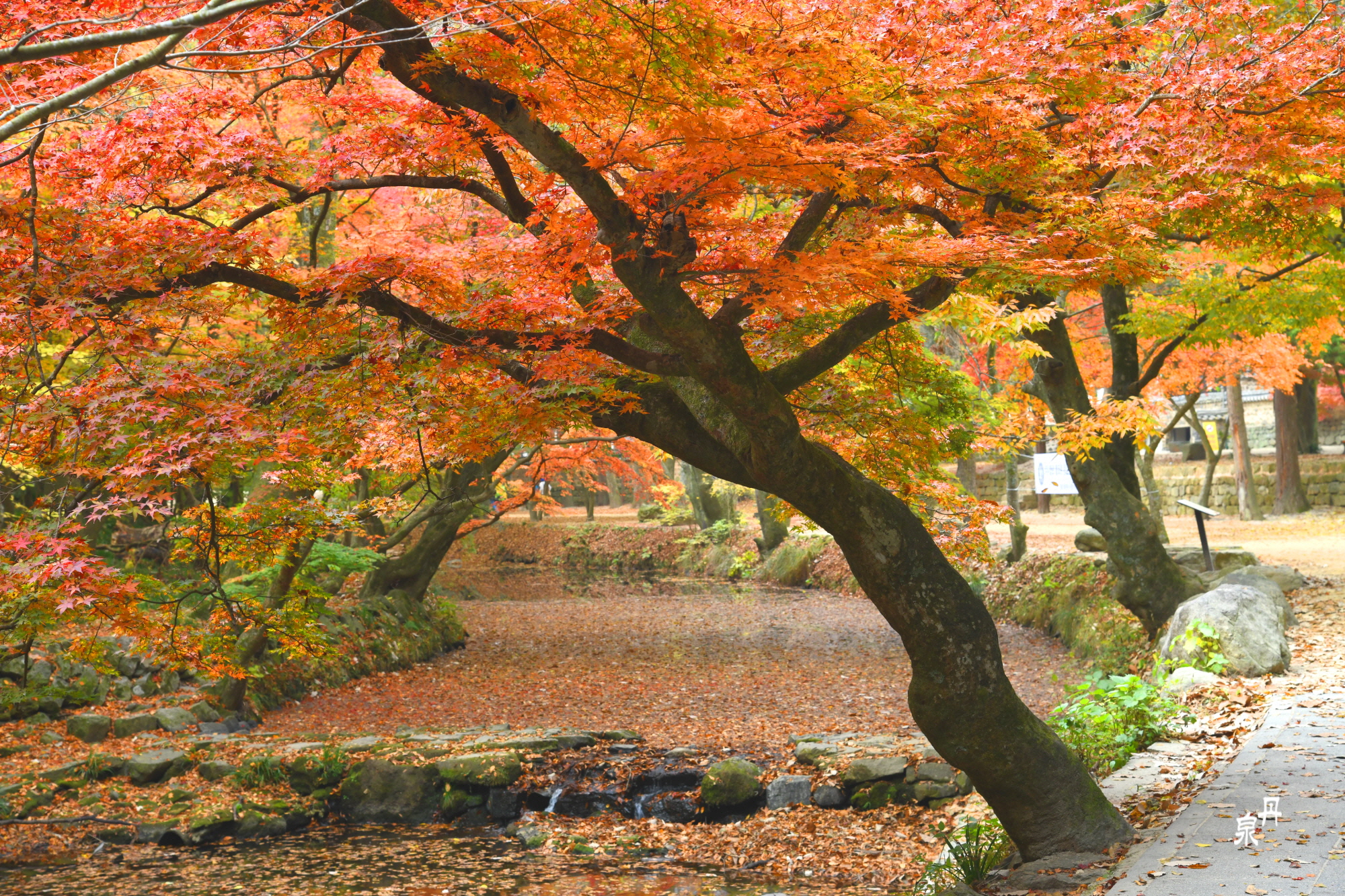 도솔천을 낙엽이 감추고 있다
