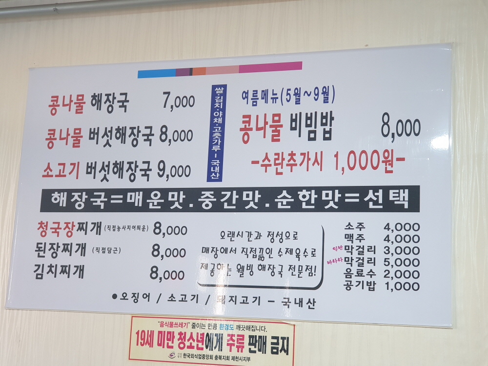 장가네 해장국집은 충북 금성면 성내리 청풍호 옆 작은 동네에 있는 해장국전문 집이다