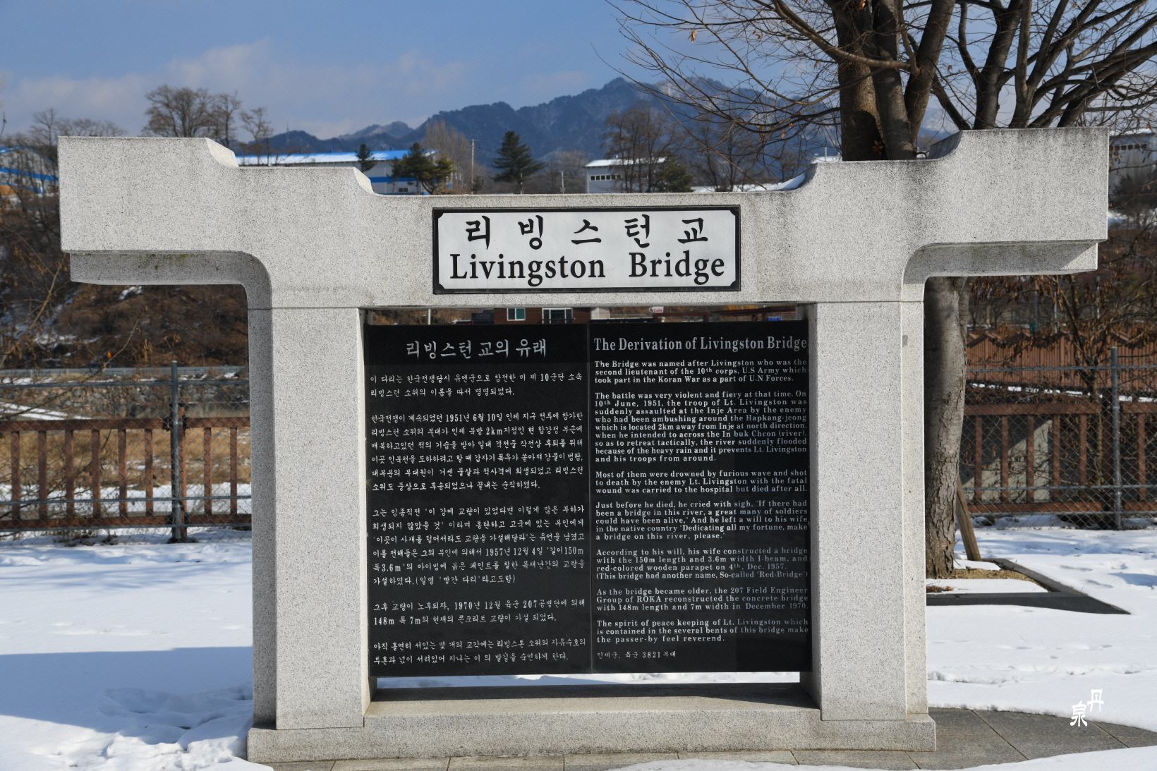 2015년 6월에 그 옆에 영구히 잊지 말자고 빨간 다리를 가설하여 리빙스턴 소위의 넋을 기리고 있다