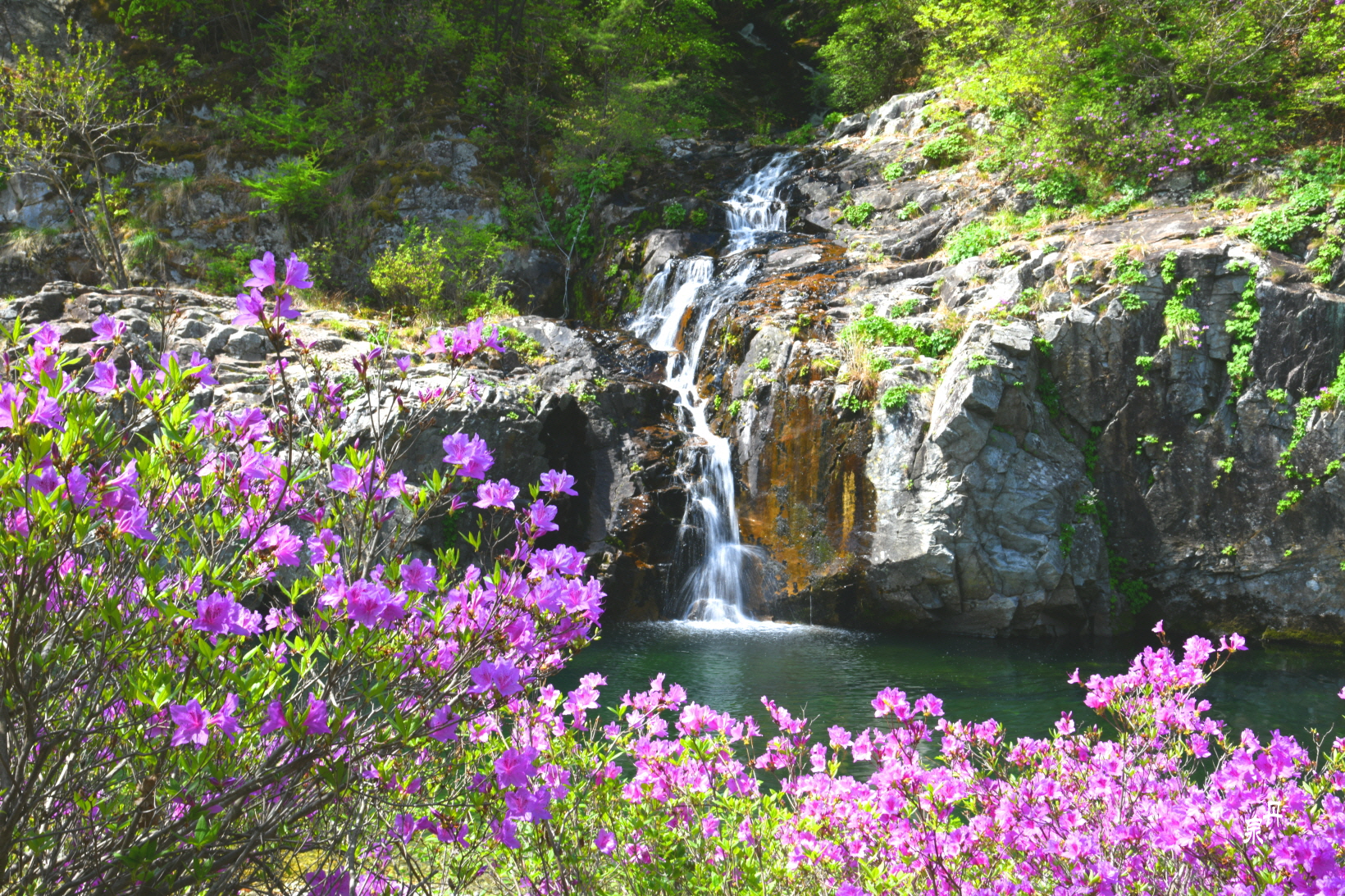 경기도 가평의 도대리 용소폭포에는 매년 예쁜 수달래가 피어 많은 사진가들의 사랑을 받는 명소인데