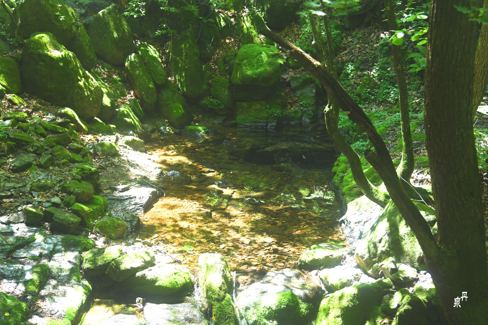검룡소는 비가 오지 않아도 물이 마르지 않고 사계절 내내 9ºC 의 지하수가 하루에 2000 여톤 가량 솟아난다