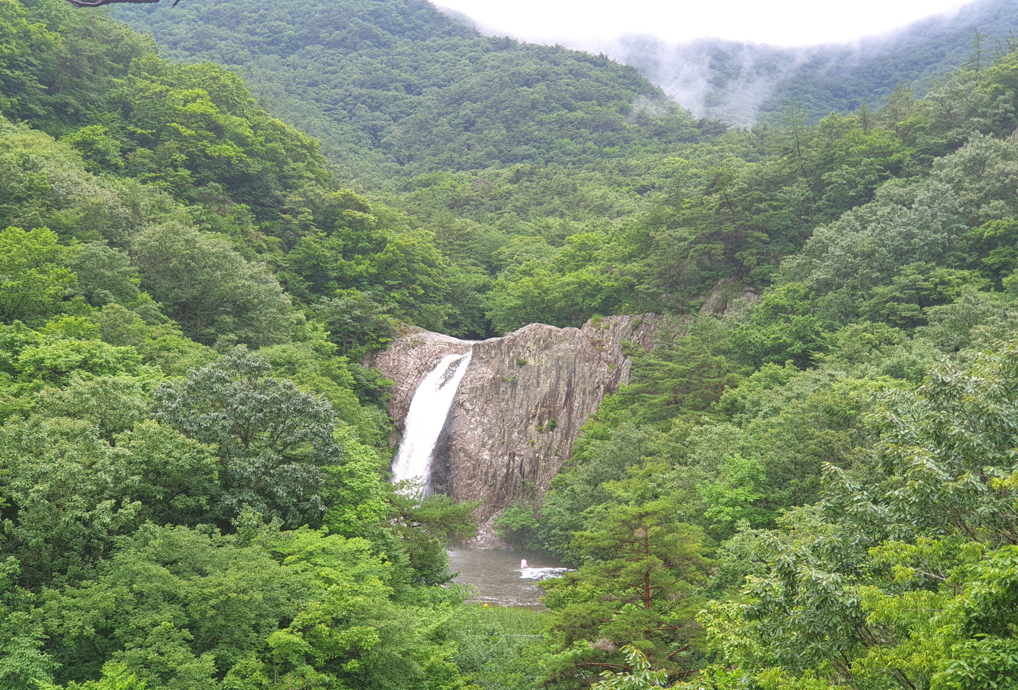 폭포 좀 더 가까이 갈 수 있을 것 같은데 장마철이라 더 이상 접근을 안 하는 것이 좋겠다
