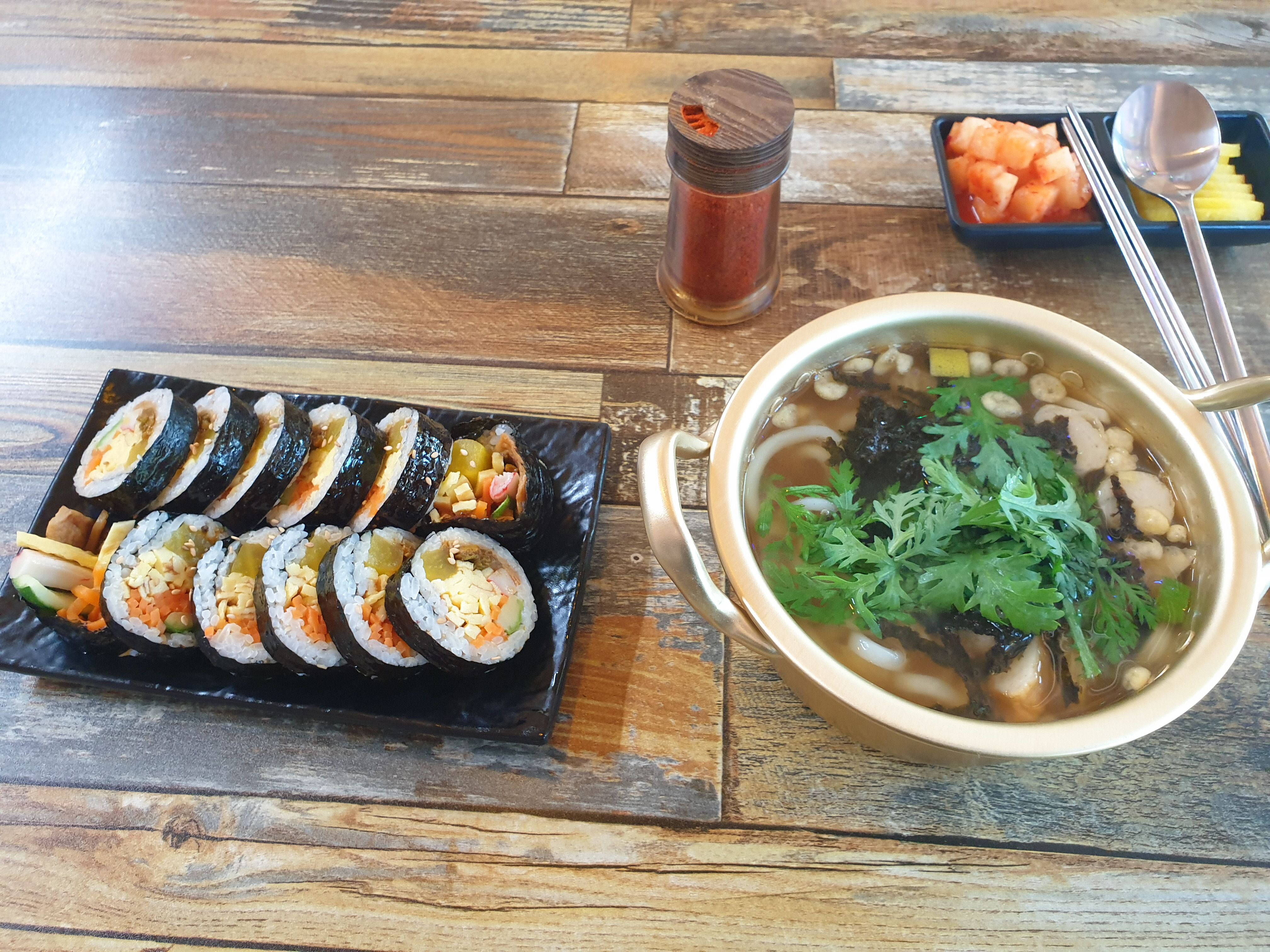 김밥 한 줄 냄비우동 하나로 점심식사 끝