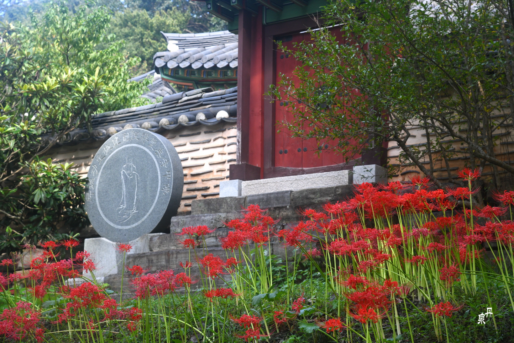불갑사 무량수전 앞에 꽃무릇이 예쁘다