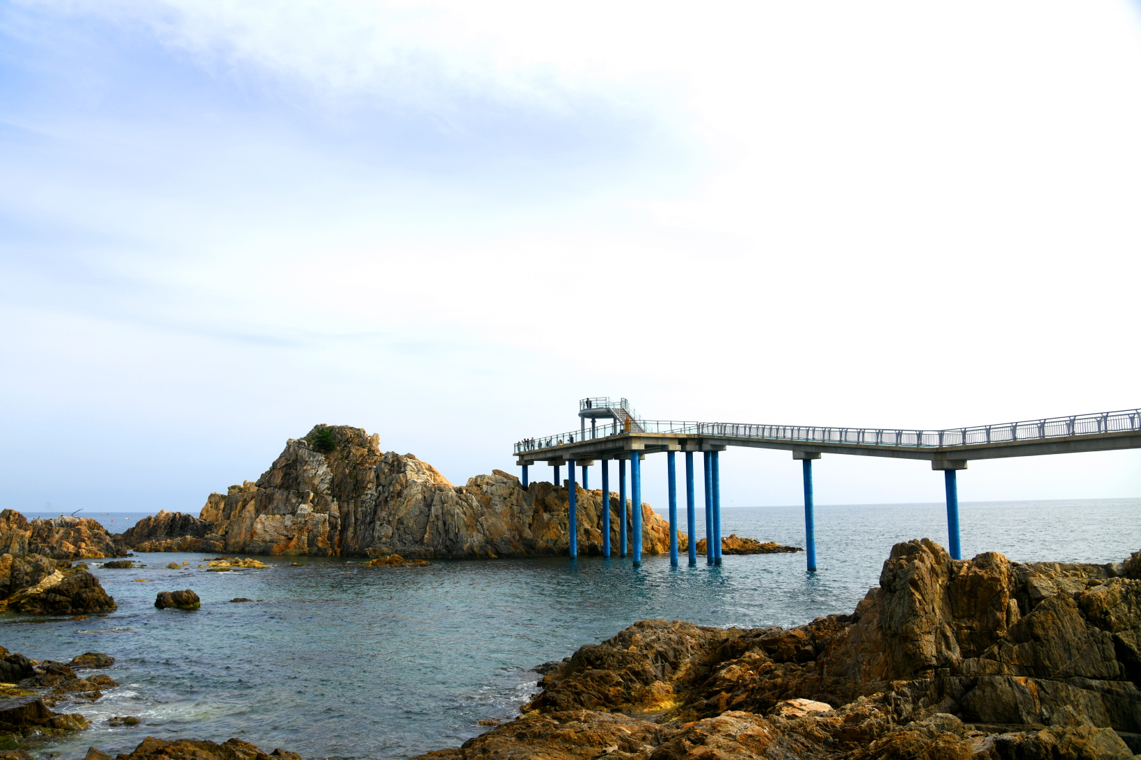 강원 거진에 백섬해상전망대는 어촌관광체험마을 사업의 일환으로 2020년에 백섬을 연결하는 다리로 만들었다