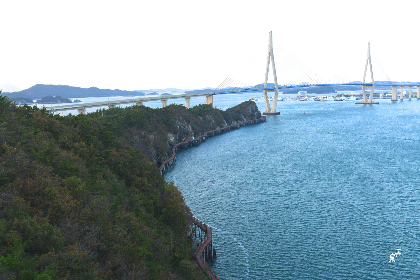케이블카에서 보는 목포대교와 고하도 해안 데크길