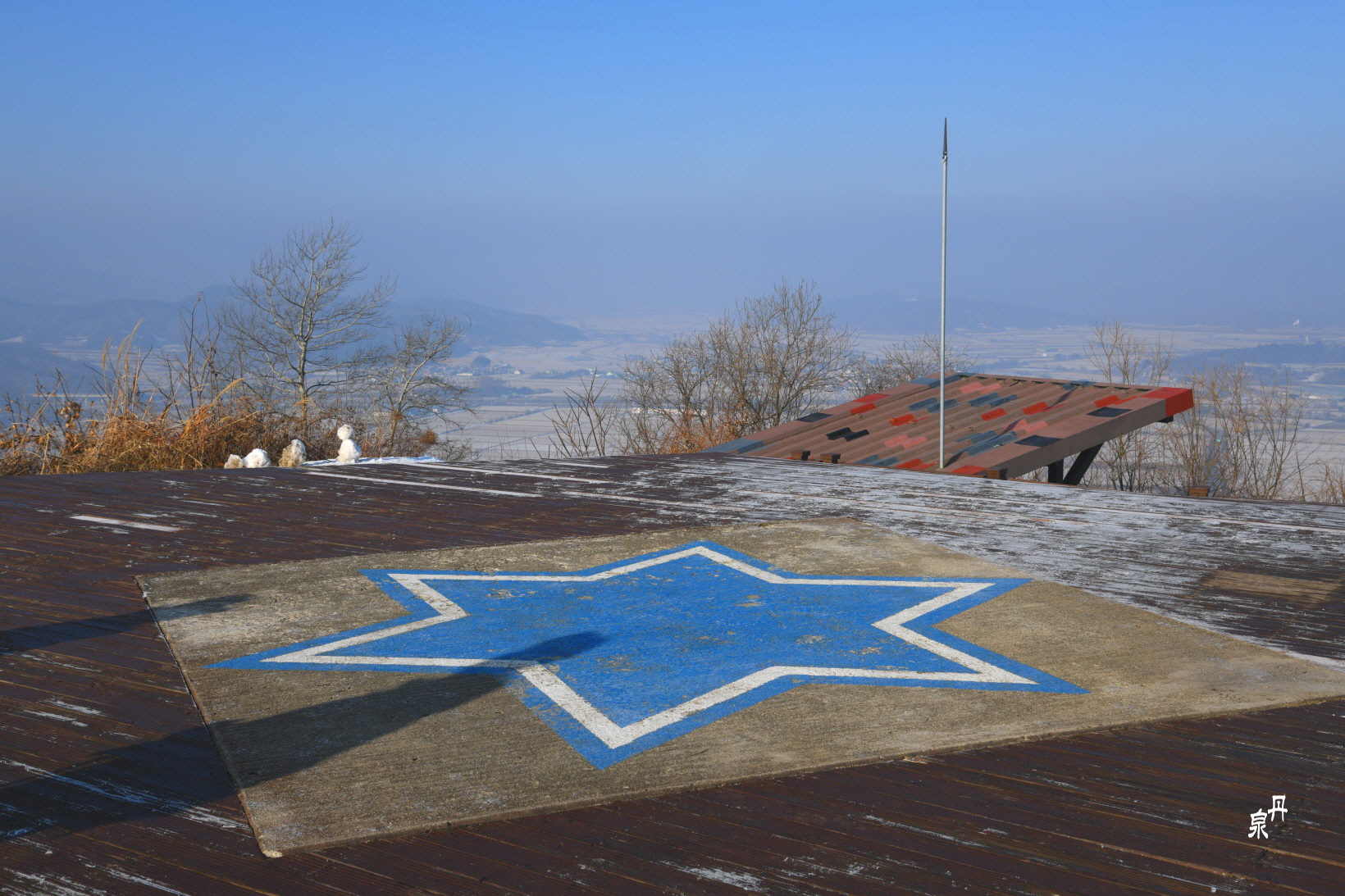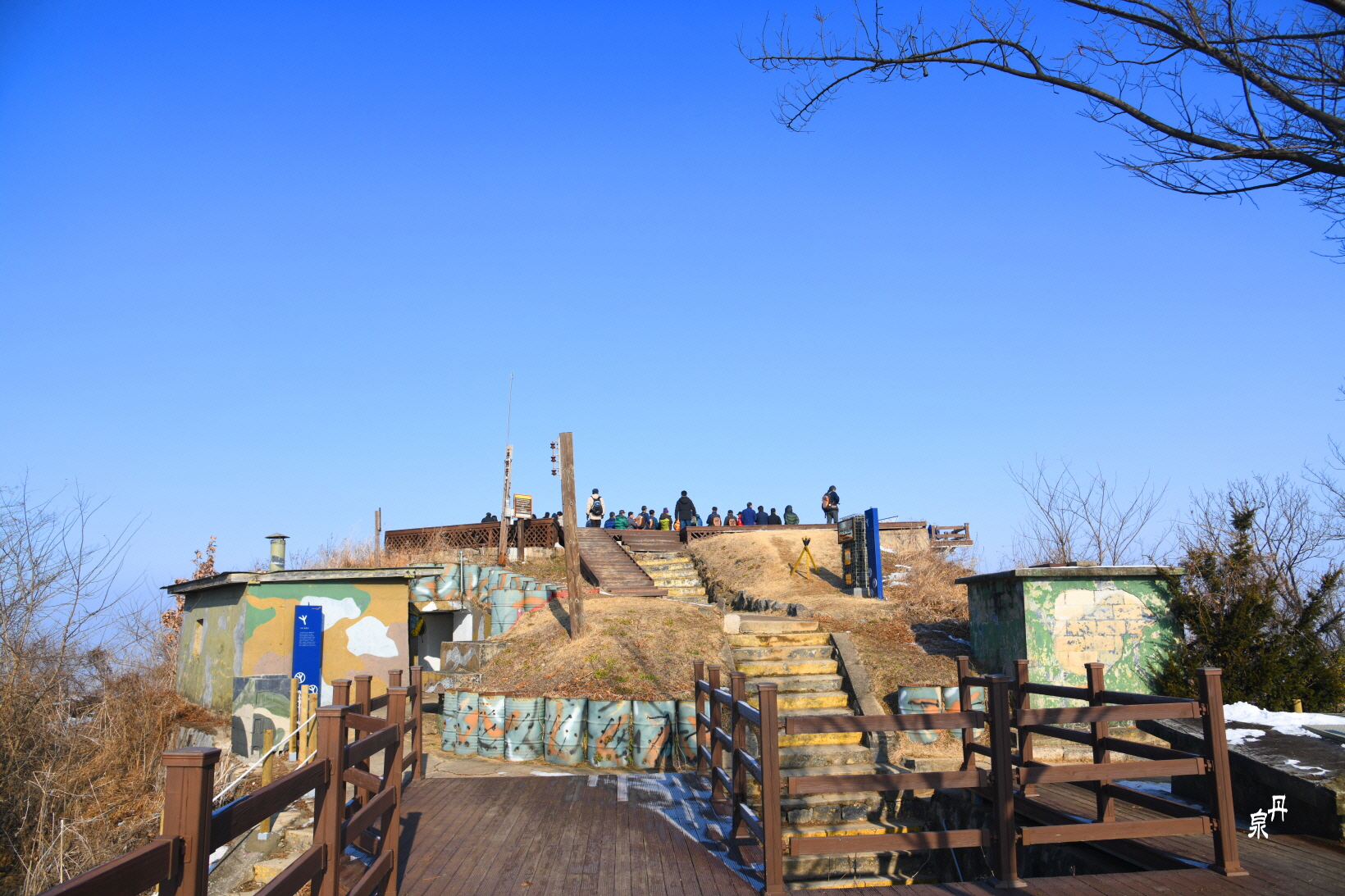 정상에는 철원 평야가 펼쳐지는데 DMZ와 북한땅은 운무와 안개로 보이지 않는다