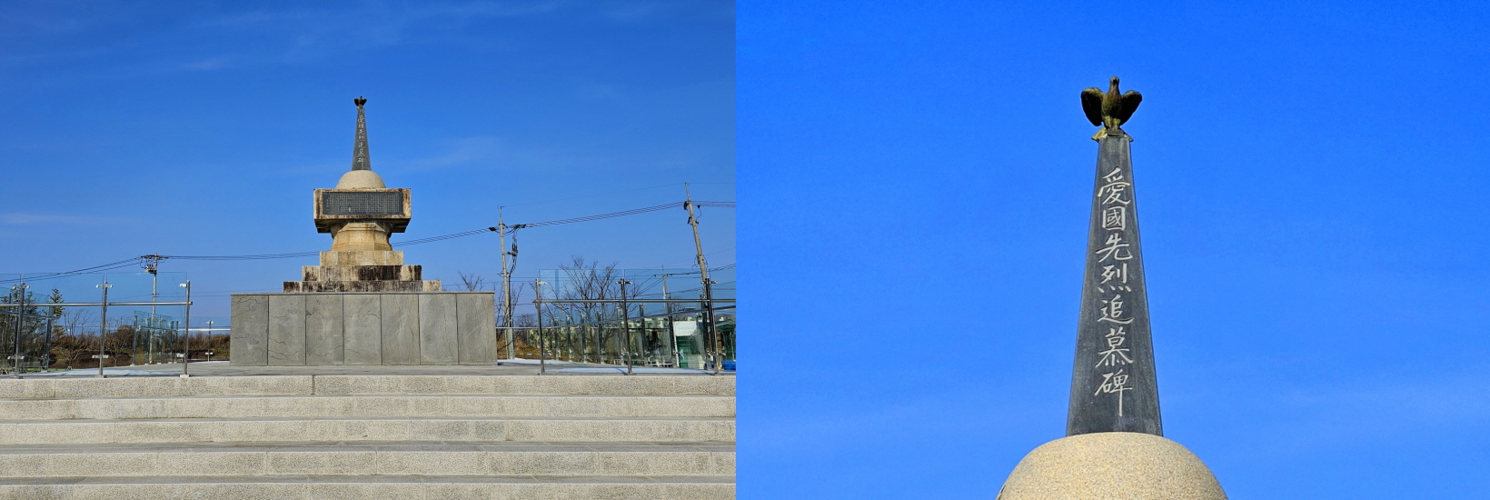 공원 앞마당의 순국선열추모비인데 이사진을 올린 이유는 추모비 글씨 때문이다