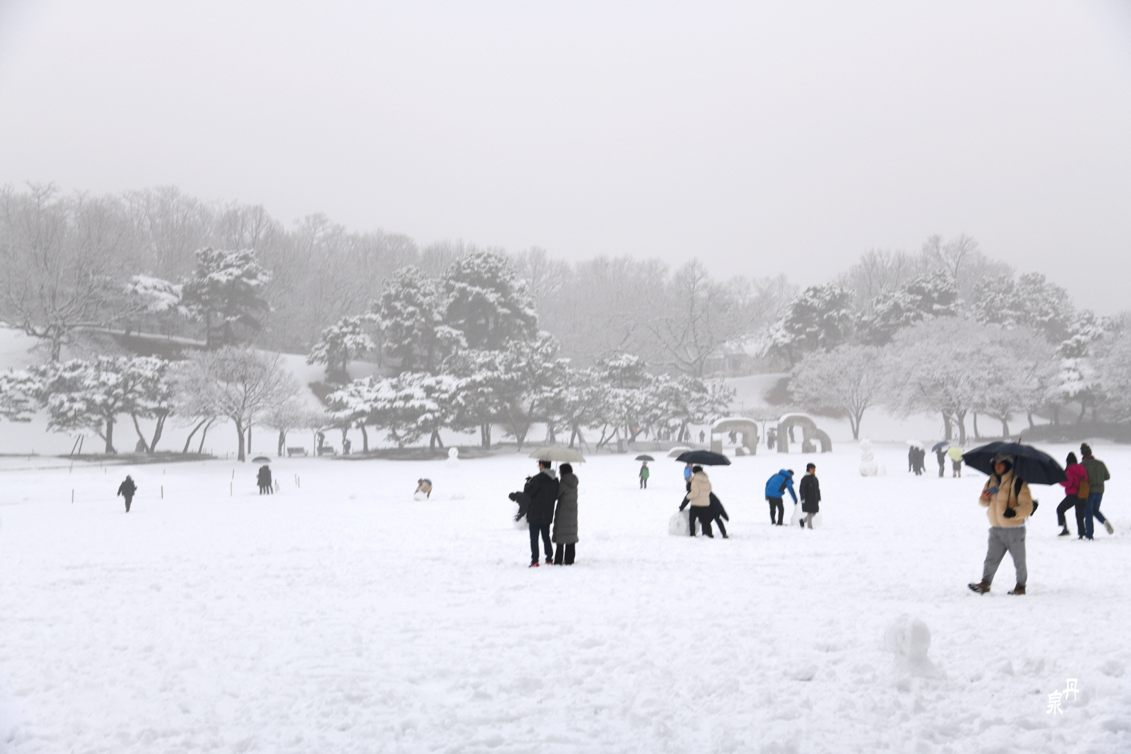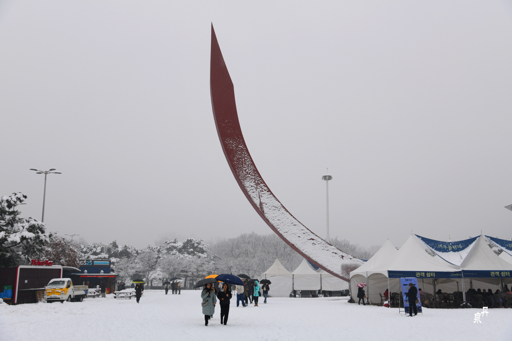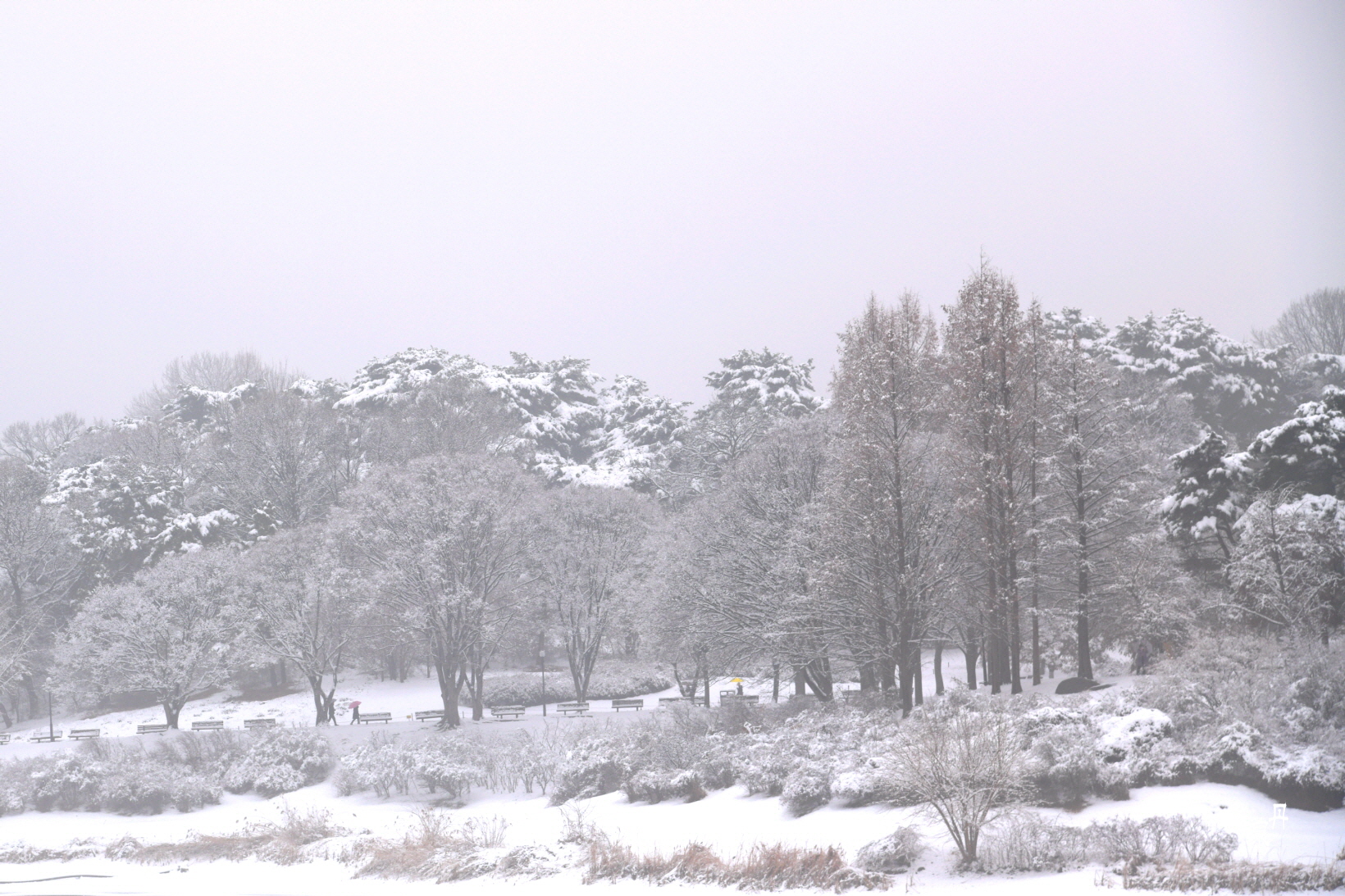 올림픽 공원으로 달려가 눈 경치를 찍으며 서울의 눈을 즐겼다