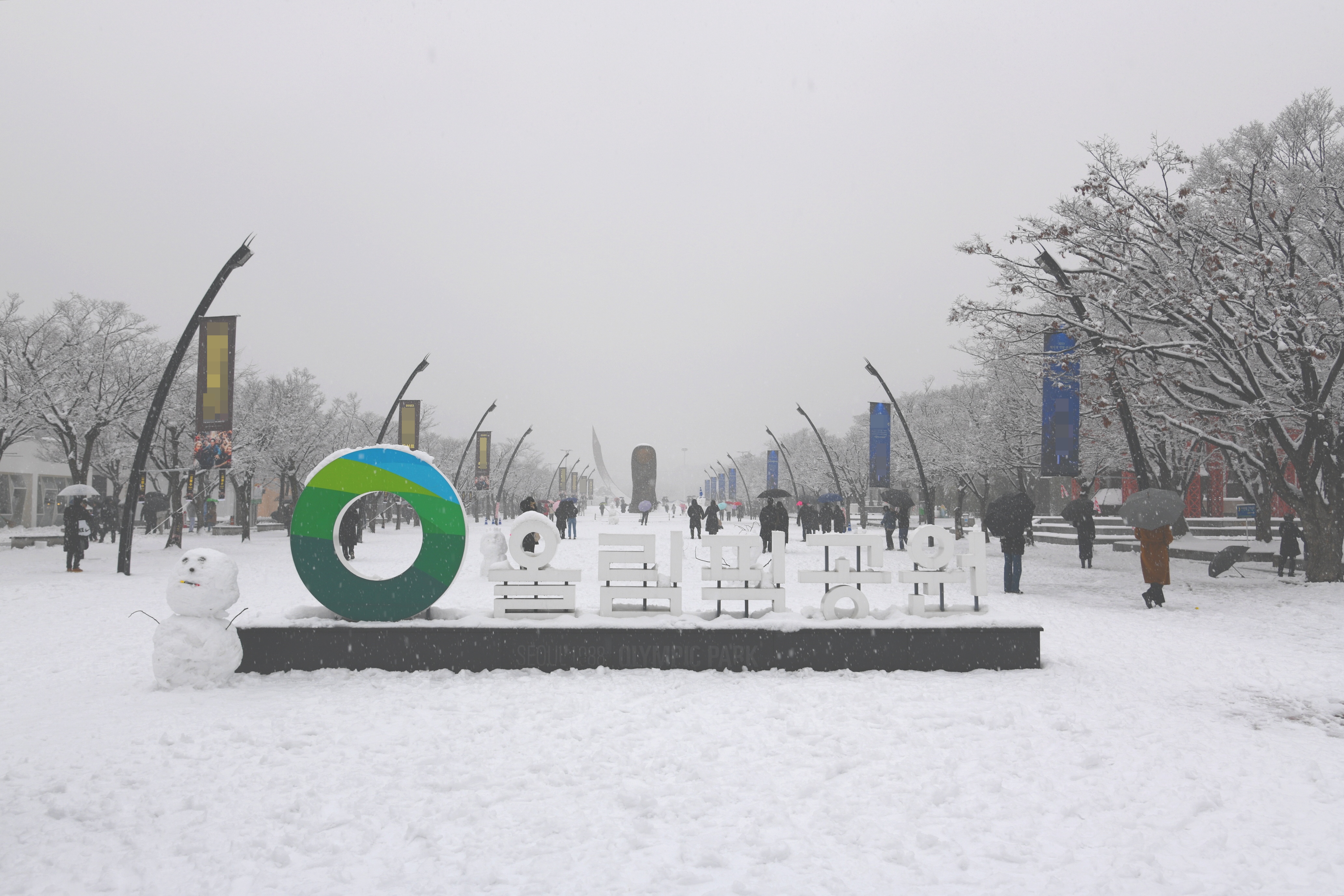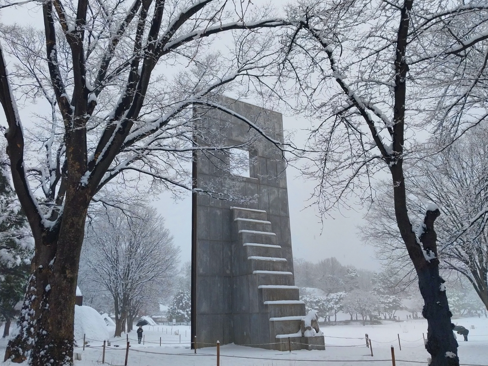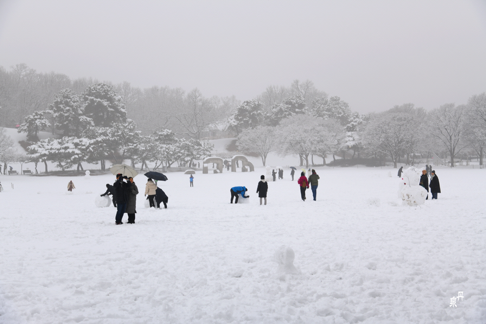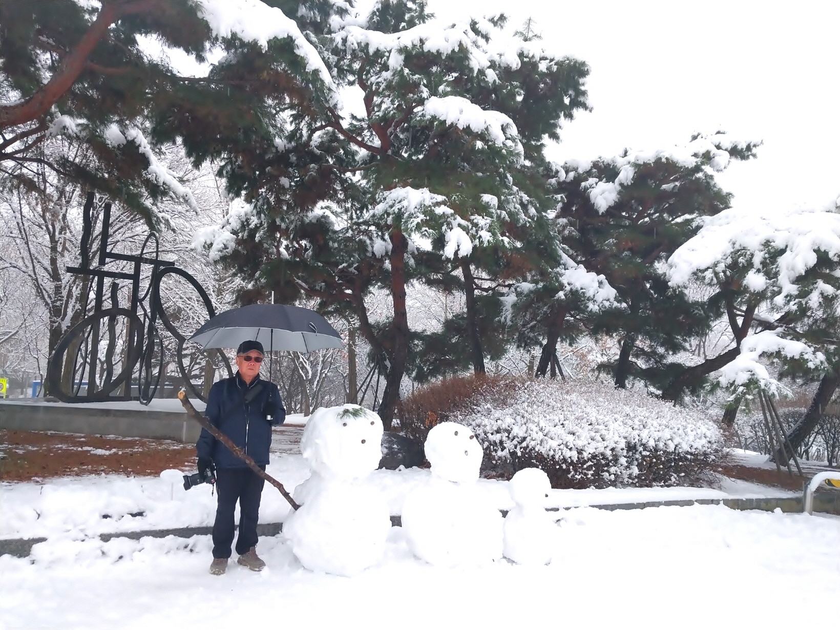 올림픽 공원으로 달려가 눈 경치를 찍으며 서울의 눈을 즐겼다