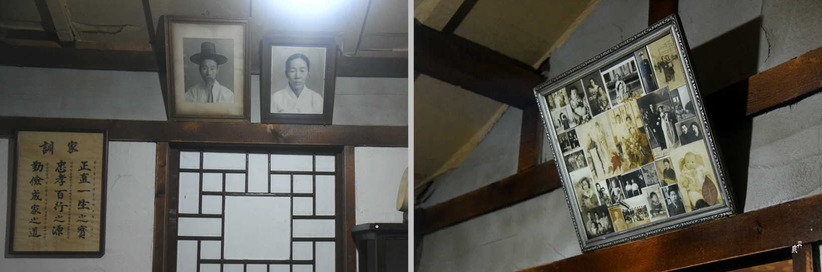 안방 문위에 걸려있는 할아버지 할머니 또는 부모님 사진