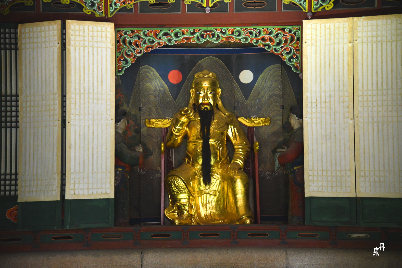 뒤에는 일월오봉도 병풍이 있다